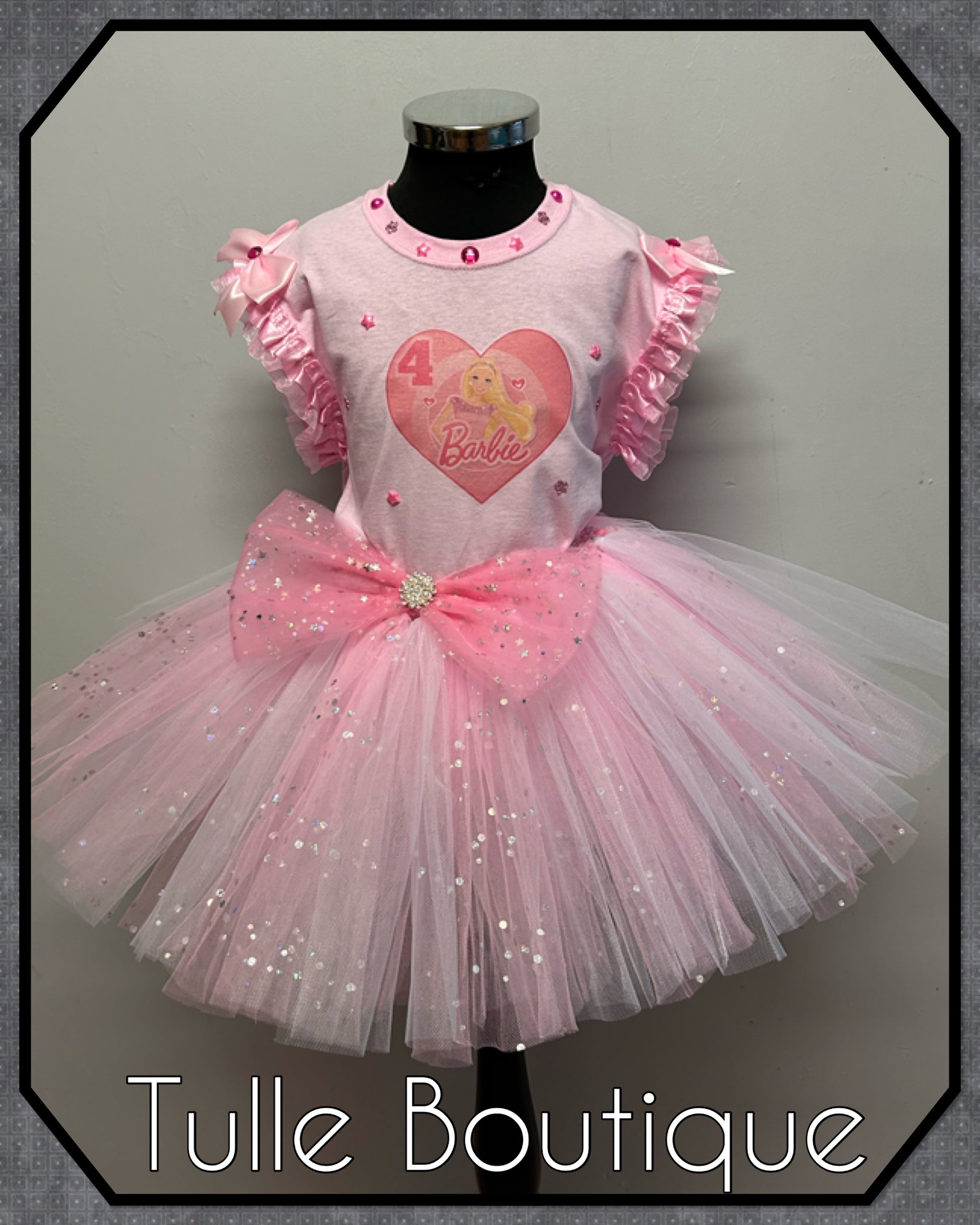 Girls Barbie pink birthday party tutu outfit