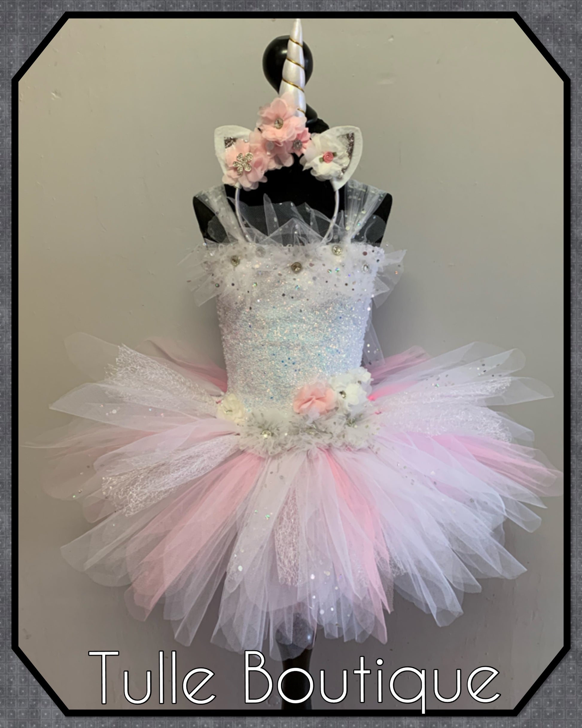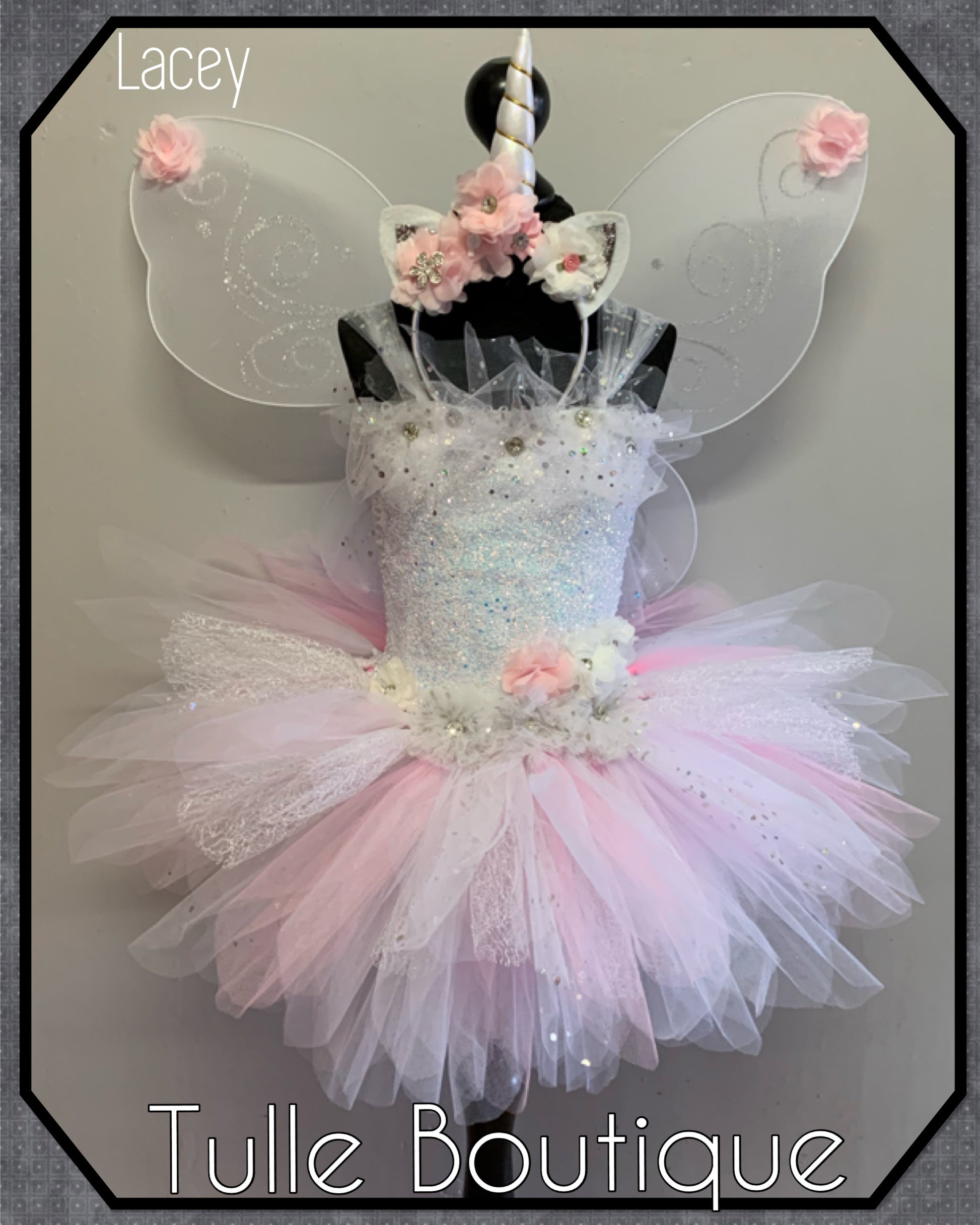 LACEY. Baby pink and white Unicorn princess tutu birthday party dress