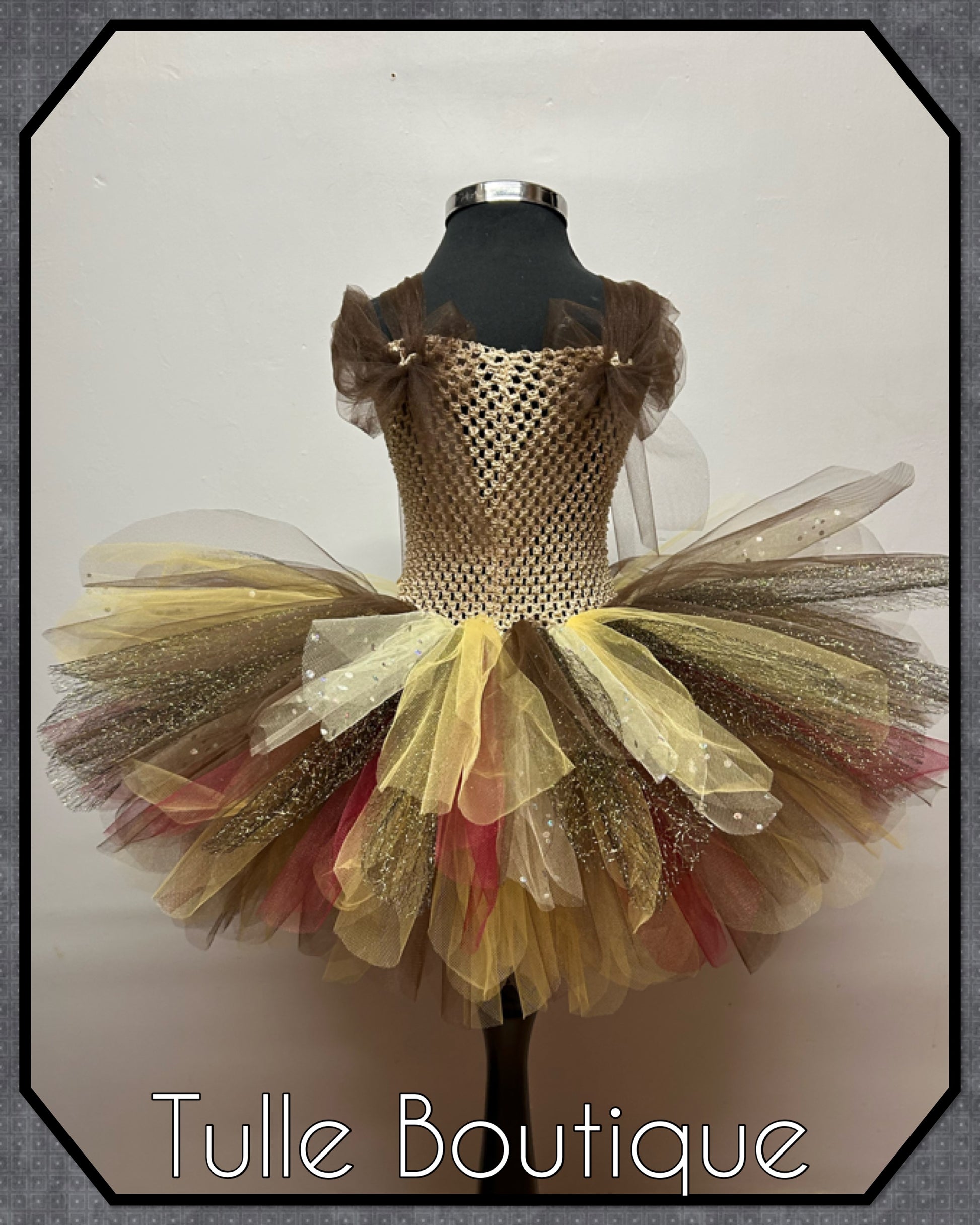 Each tutu is hand tied onto the crochet top with two double layers for extra volume and fullness so it is not see through with added sparkle sequin tulle.