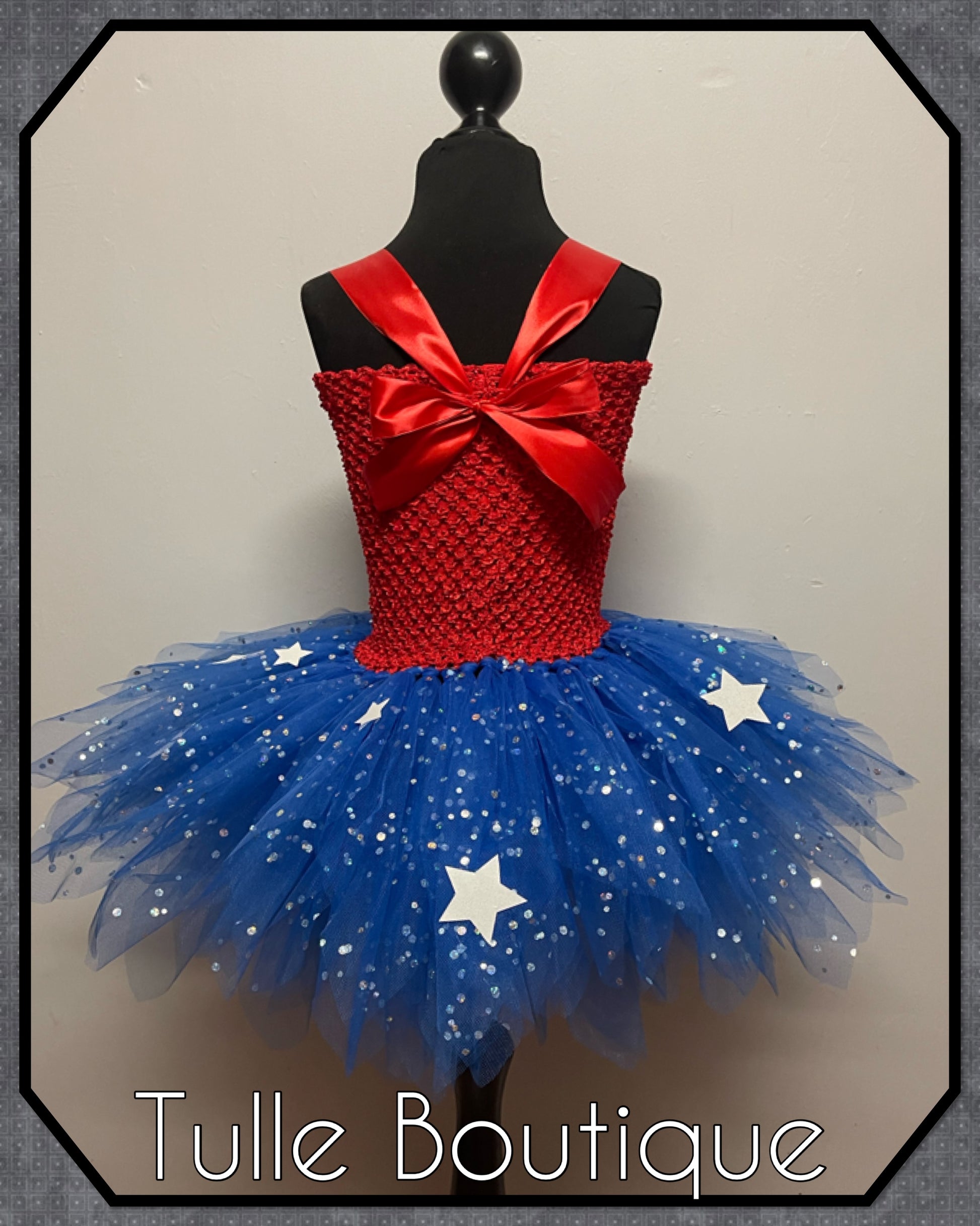 Each tutu is hand tied onto the crochet top with two double layers for extra volume and fullness so it is not see through with a scattering of felt stars.