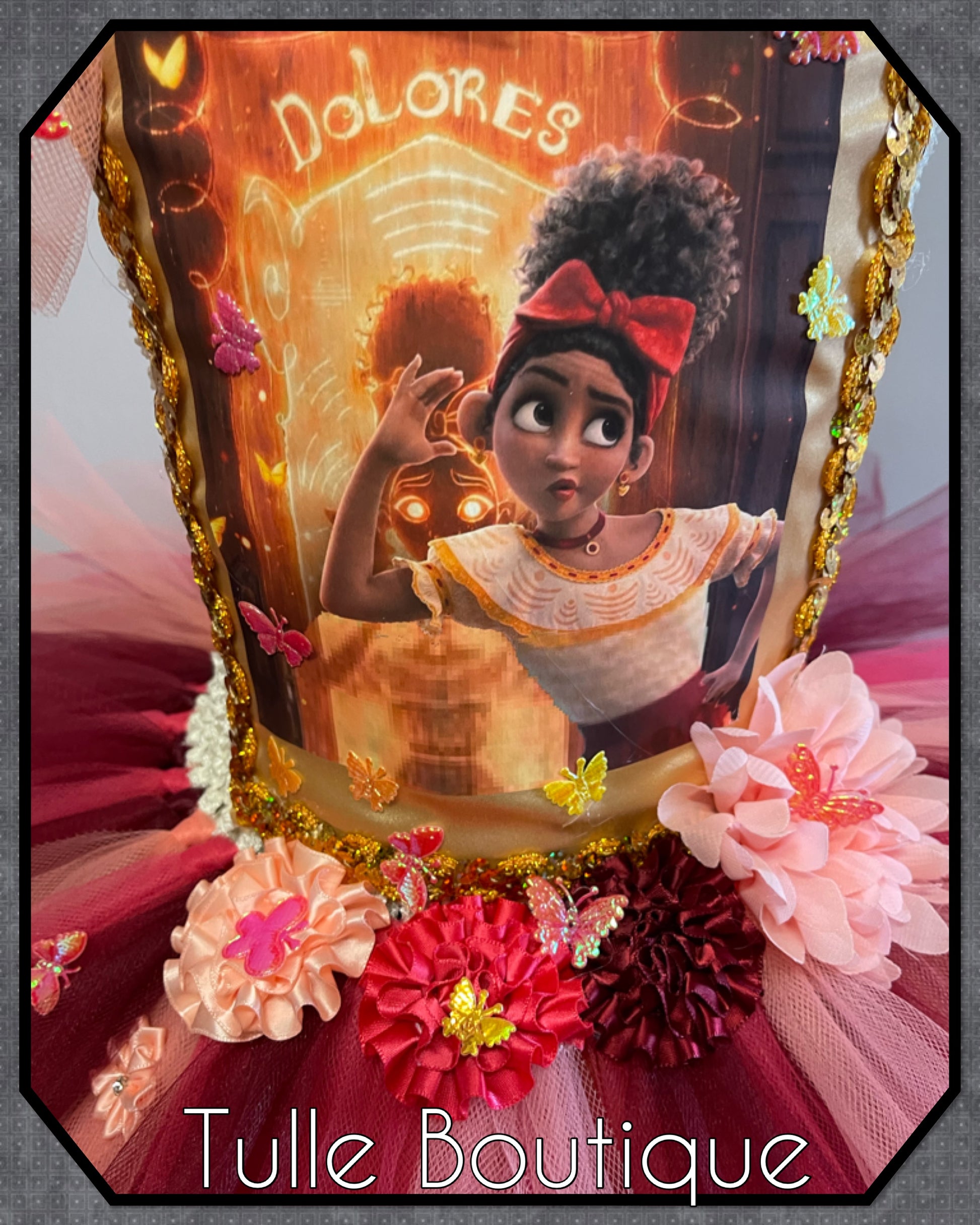 Featuring a picture patch with flower and butterfly cascade finished with gold sparkly trim.