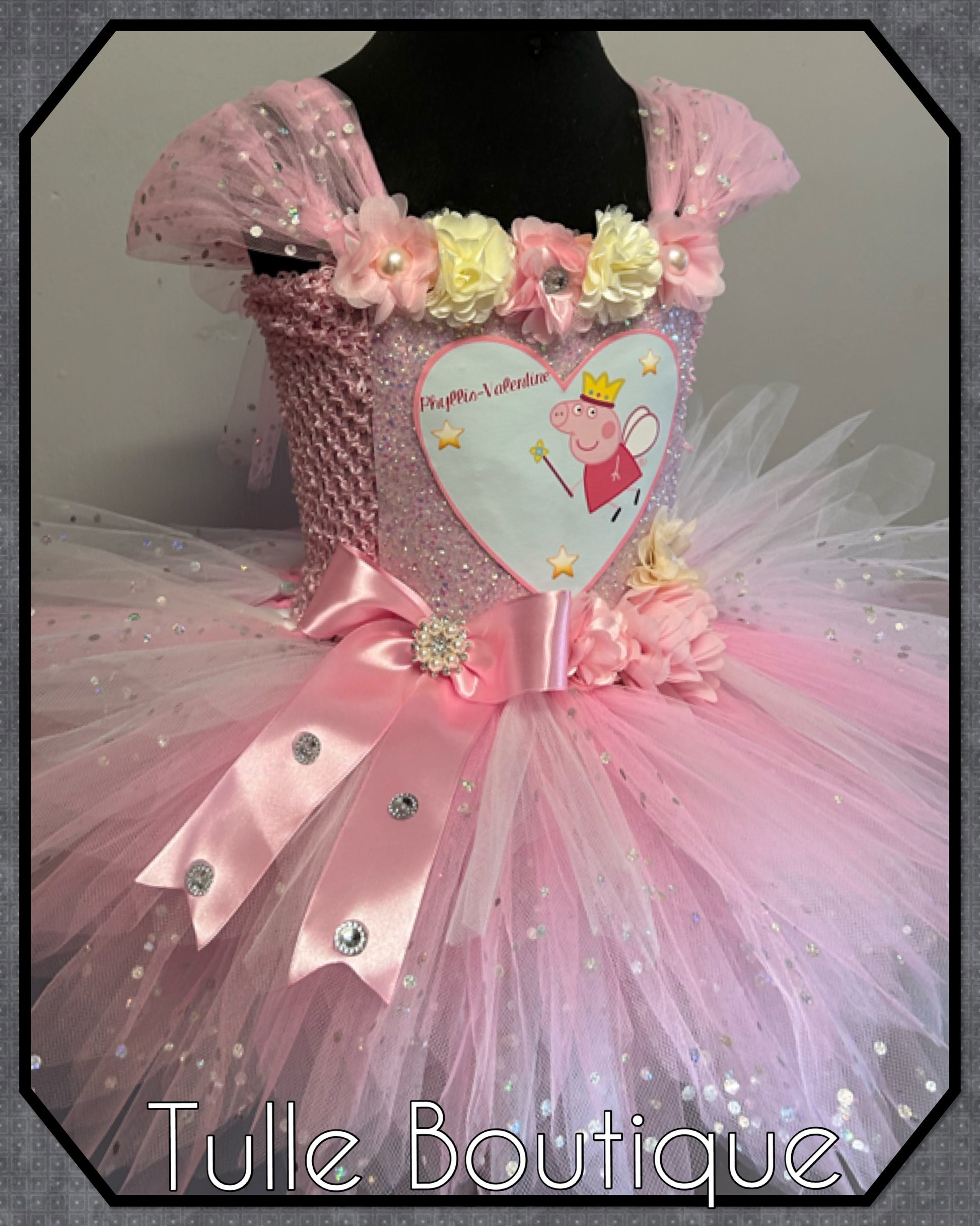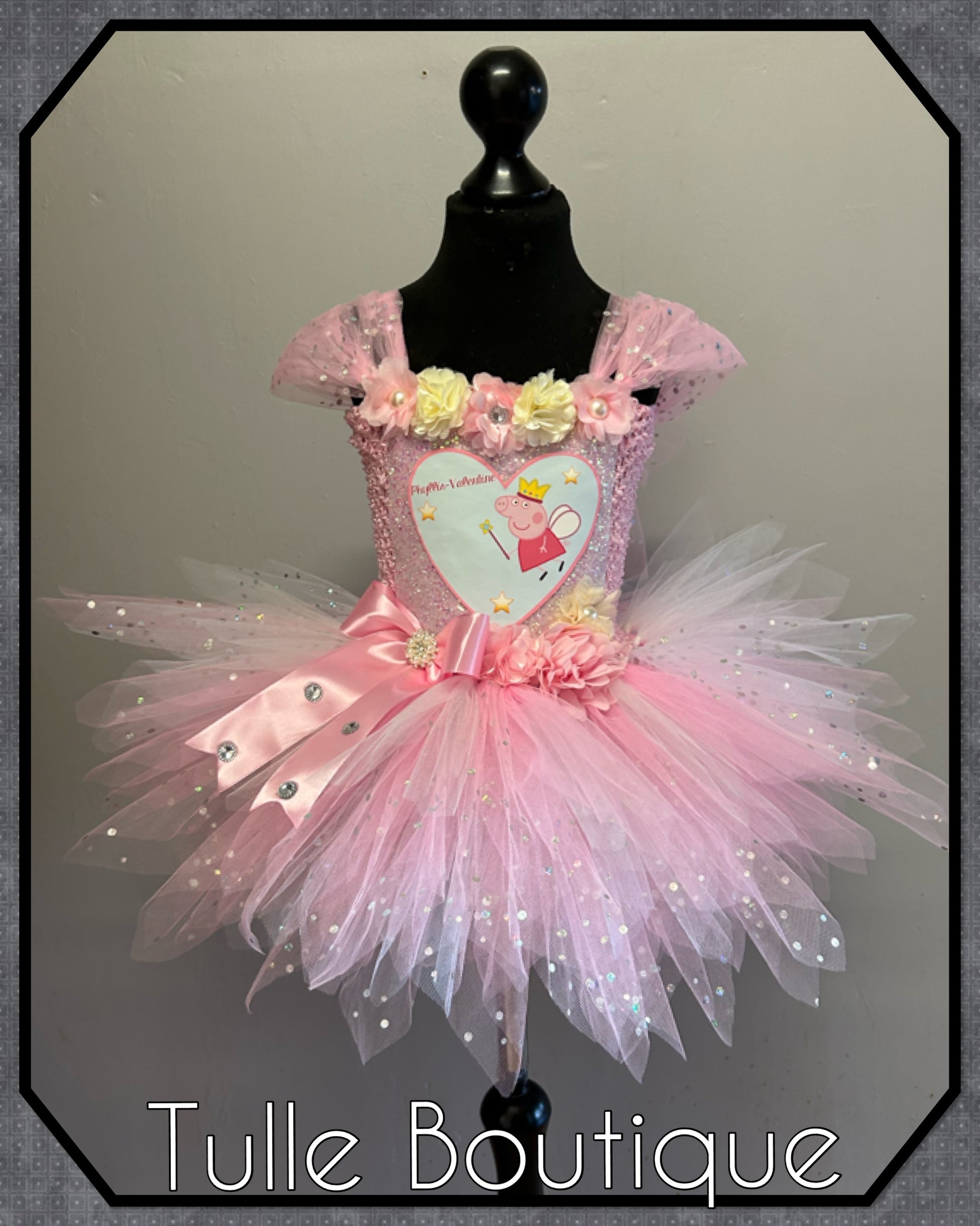 Girls Floral pink/cream Peppa pig birthday party princess tutu dress