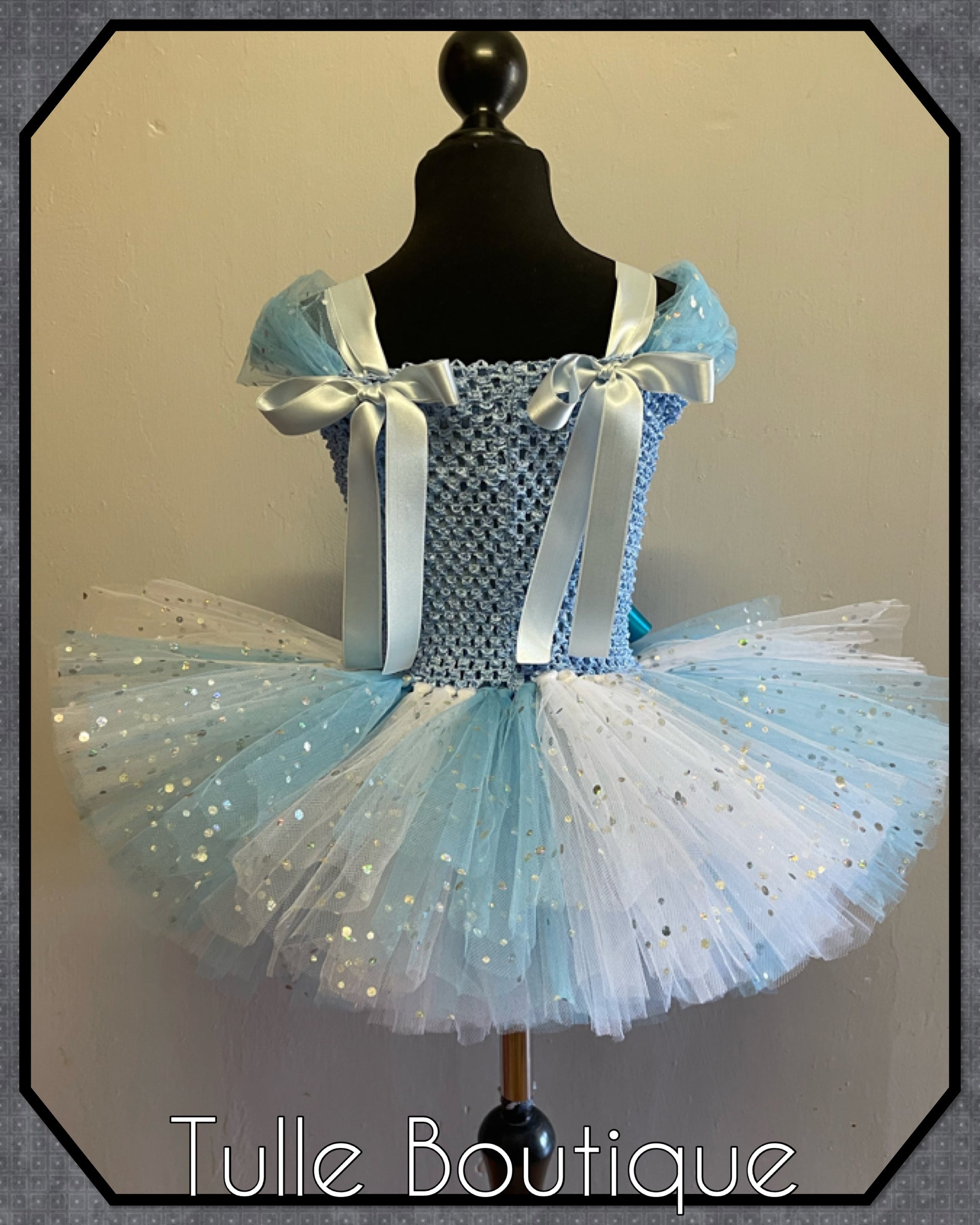 Featuring a glitter front with picture patch, bows with rhinestone embellishments and bow to the waist.