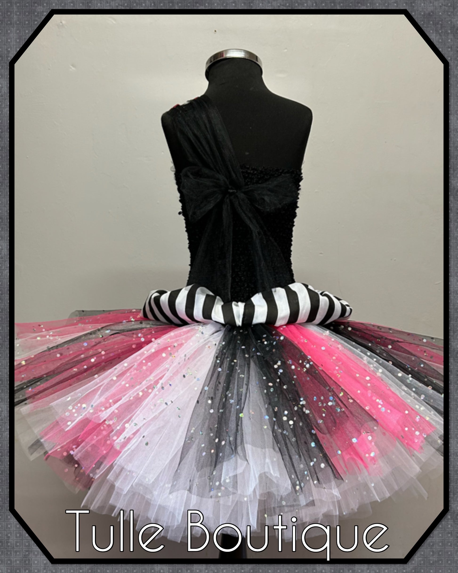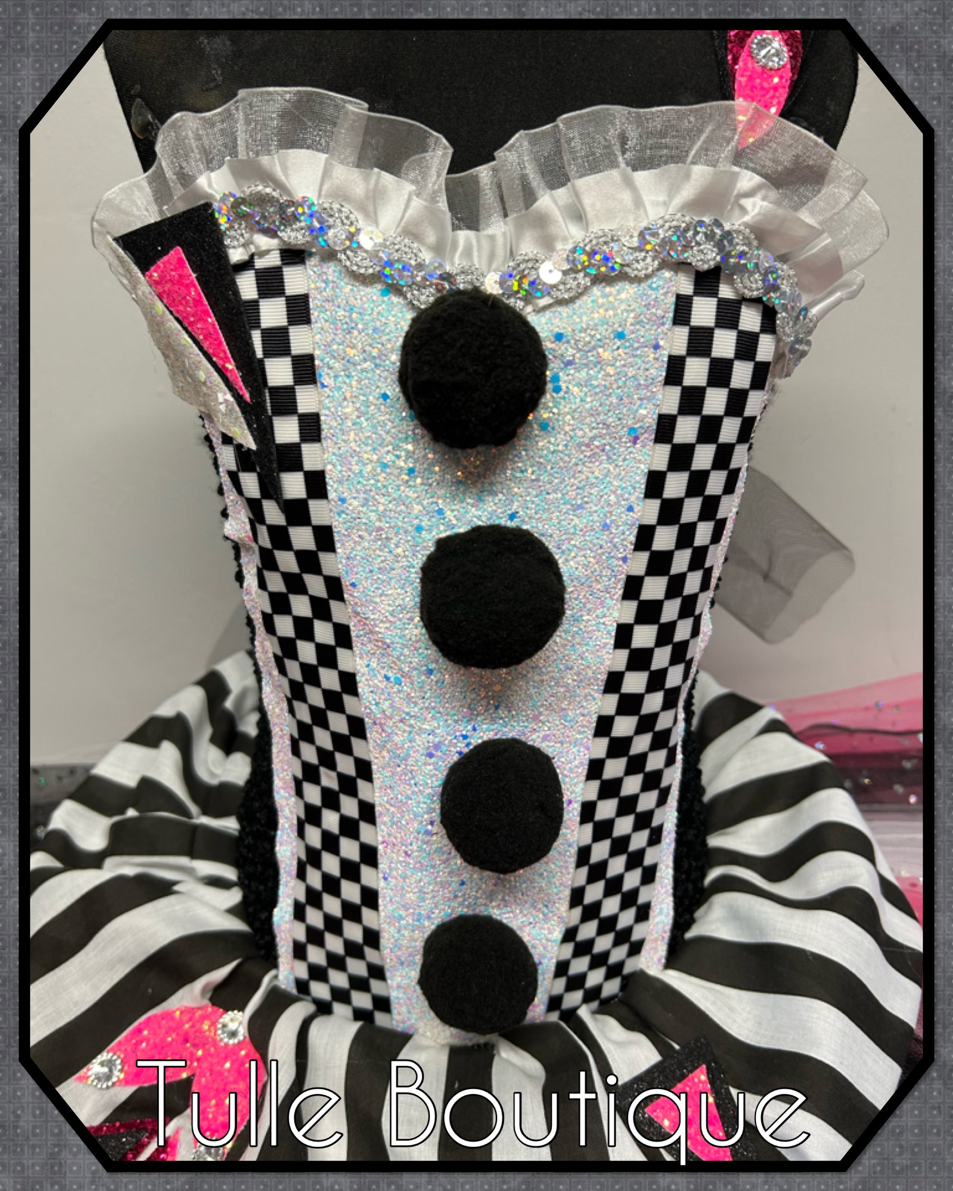 Each tutu is hand tied onto the crochet top with two double layers for extra volume and fullness so it is not see through with added sparkle pieces for that real wow factor. The cotton waist finish is puff balled which gives this dress a great shape.