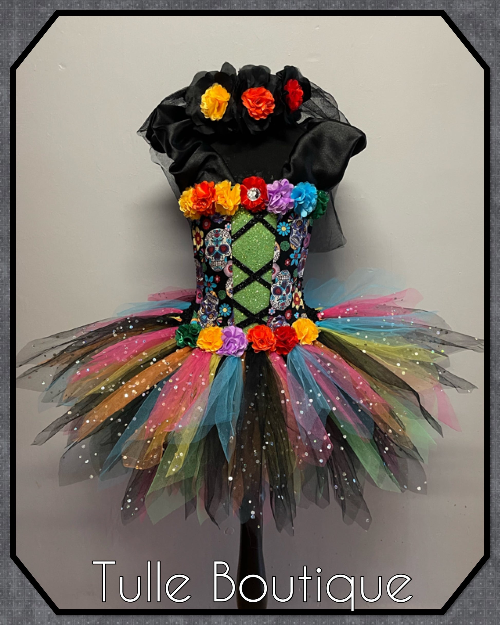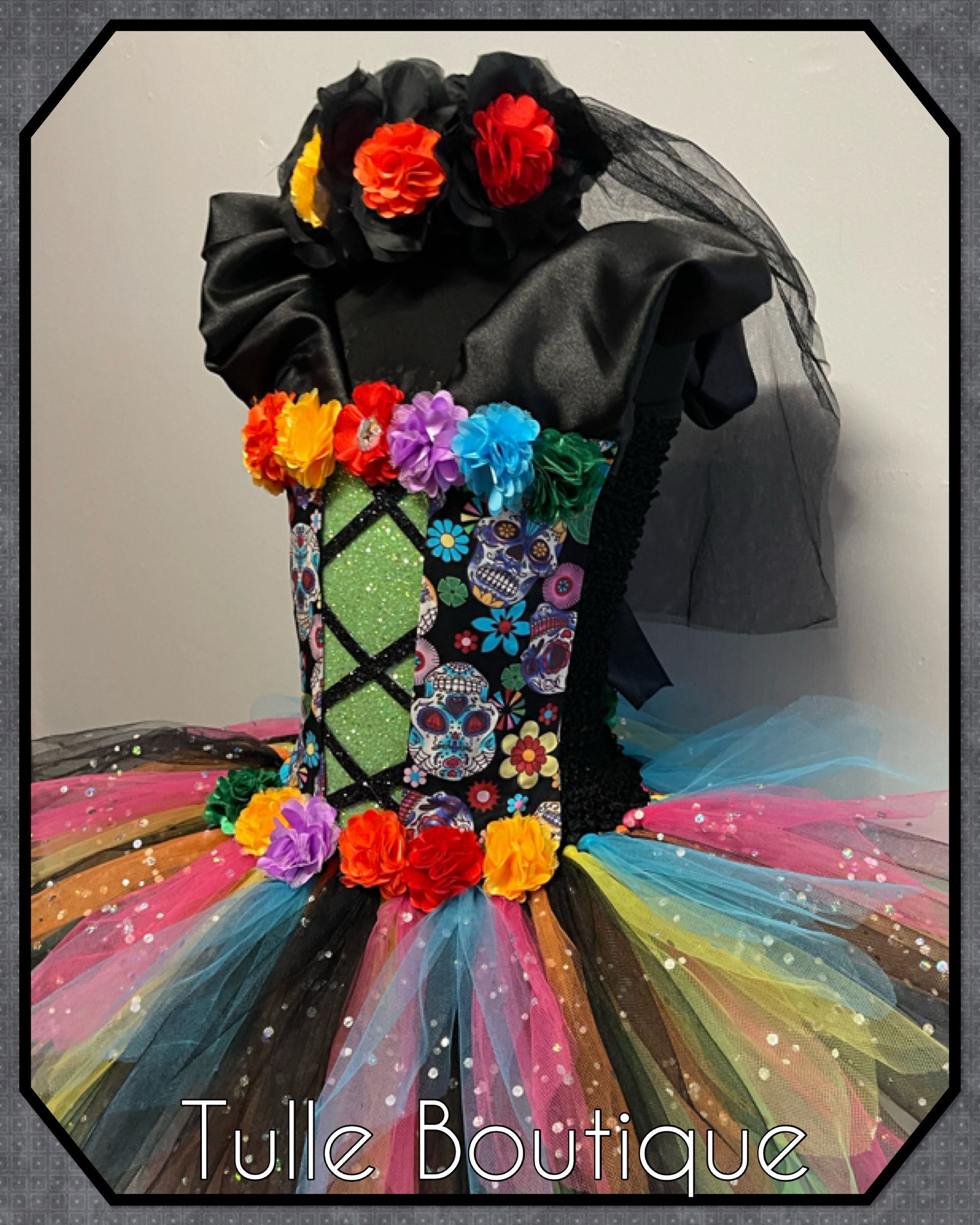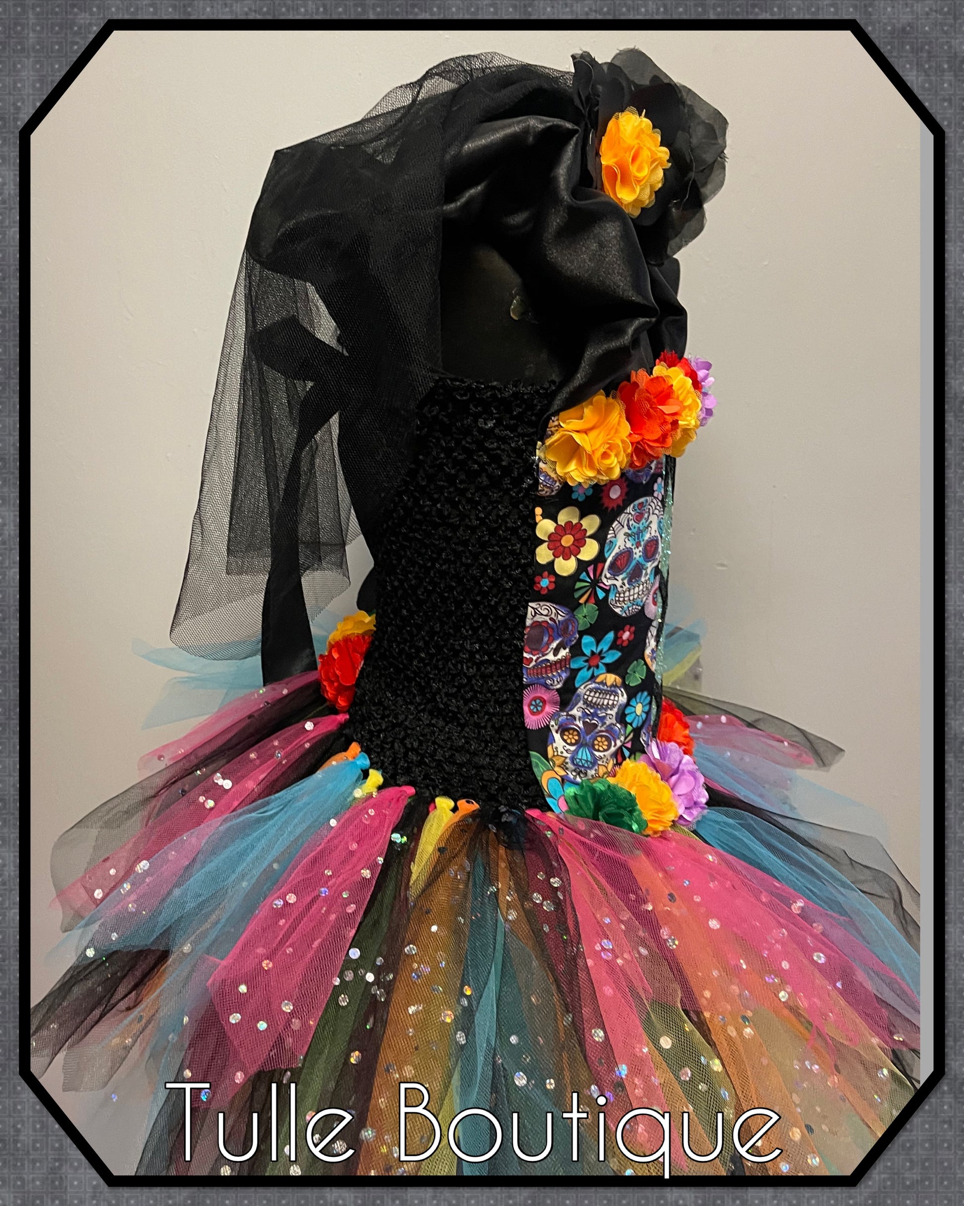 Girls Day of the dead sugar skull Halloween birthday party tutu dress princess tulle ballgown fancy dress world book day costume