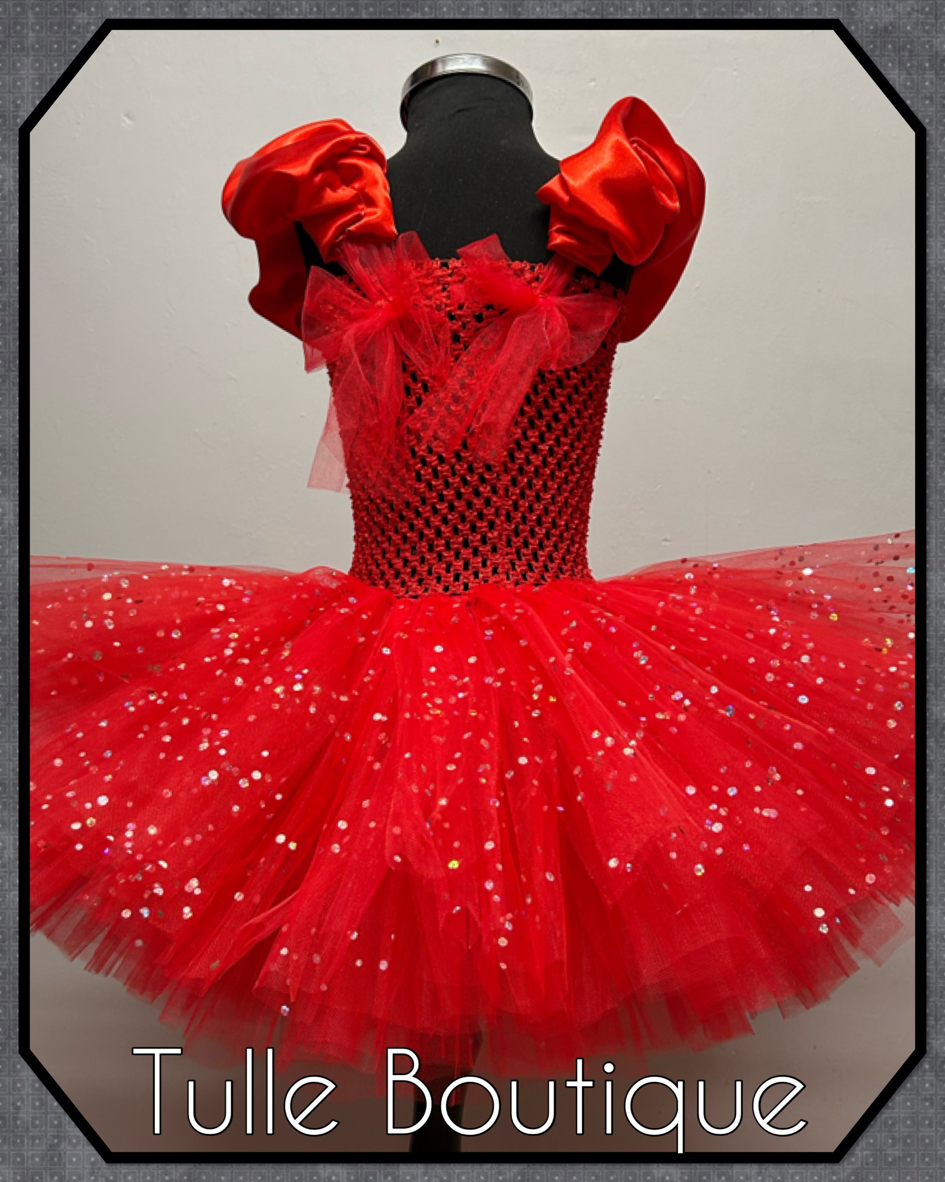 Each tutu is hand tied onto the crochet top with three double layers for extra volume and fullness so it is not see through. The back of this dress being longer than the front gives it a truly princess feel.