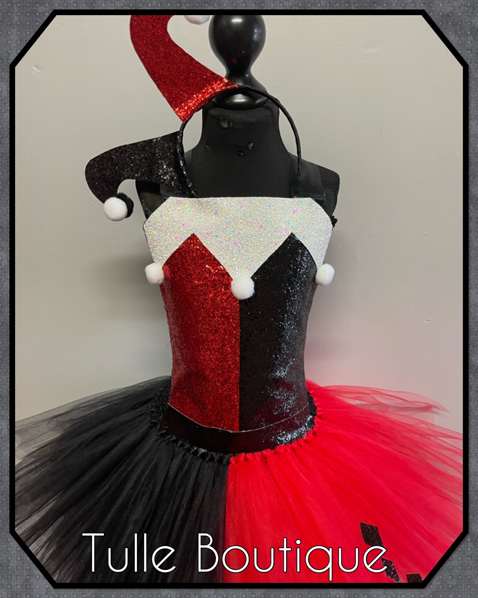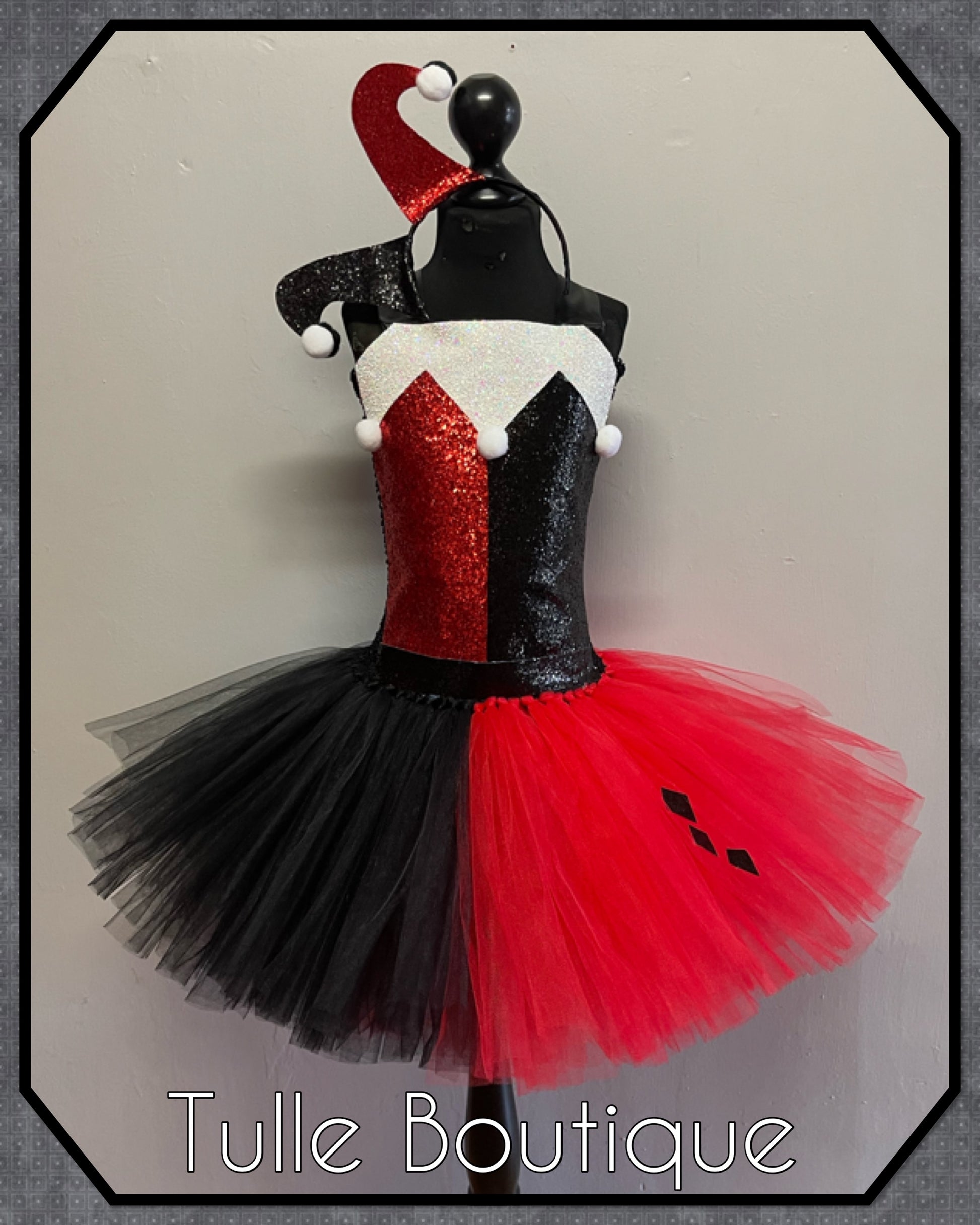 Girls Harley Quinn Jester fancy dress costume halloween party tutu dress