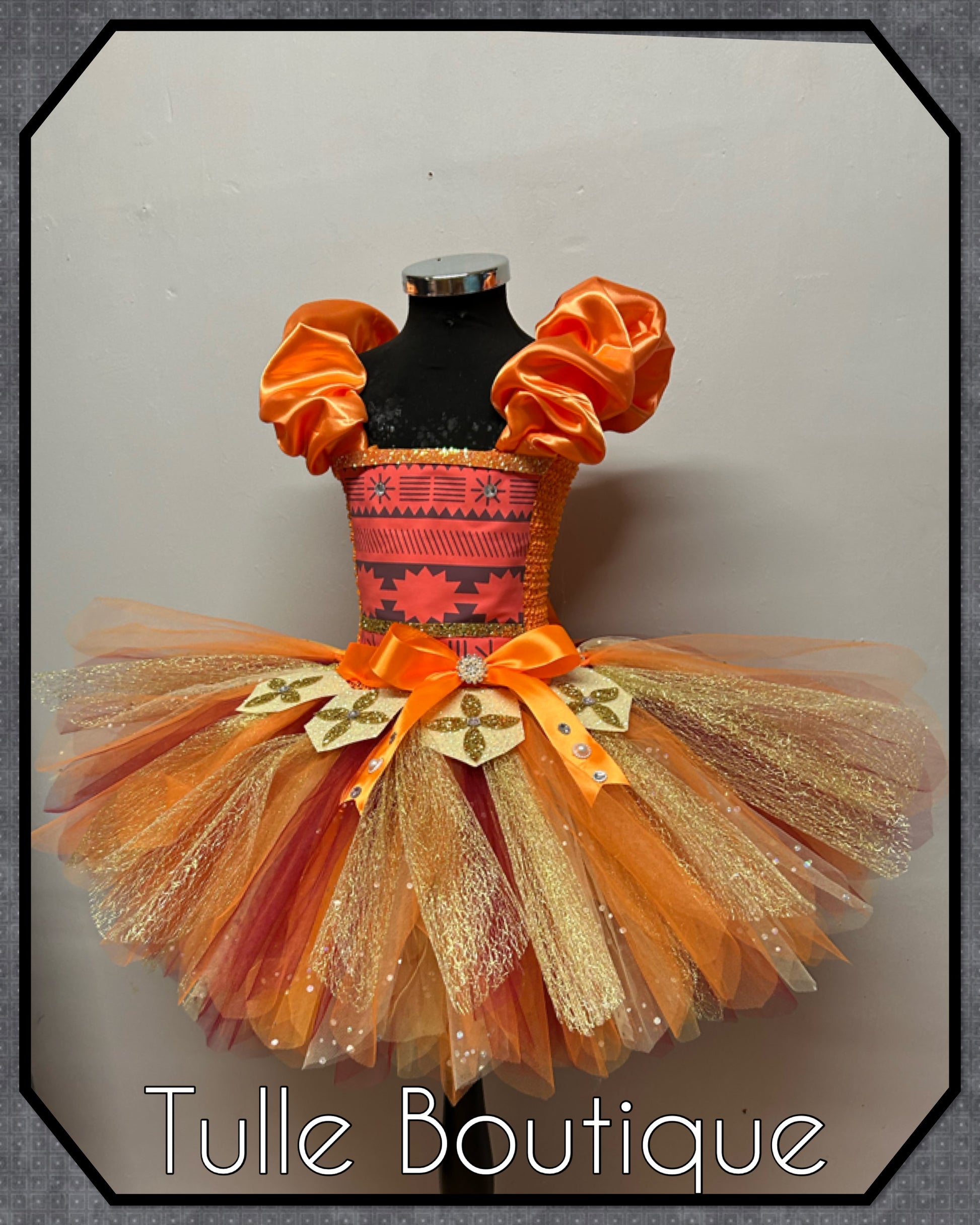 Girls Hawaiian princess moana tutu birthday party dress with satin shoulders