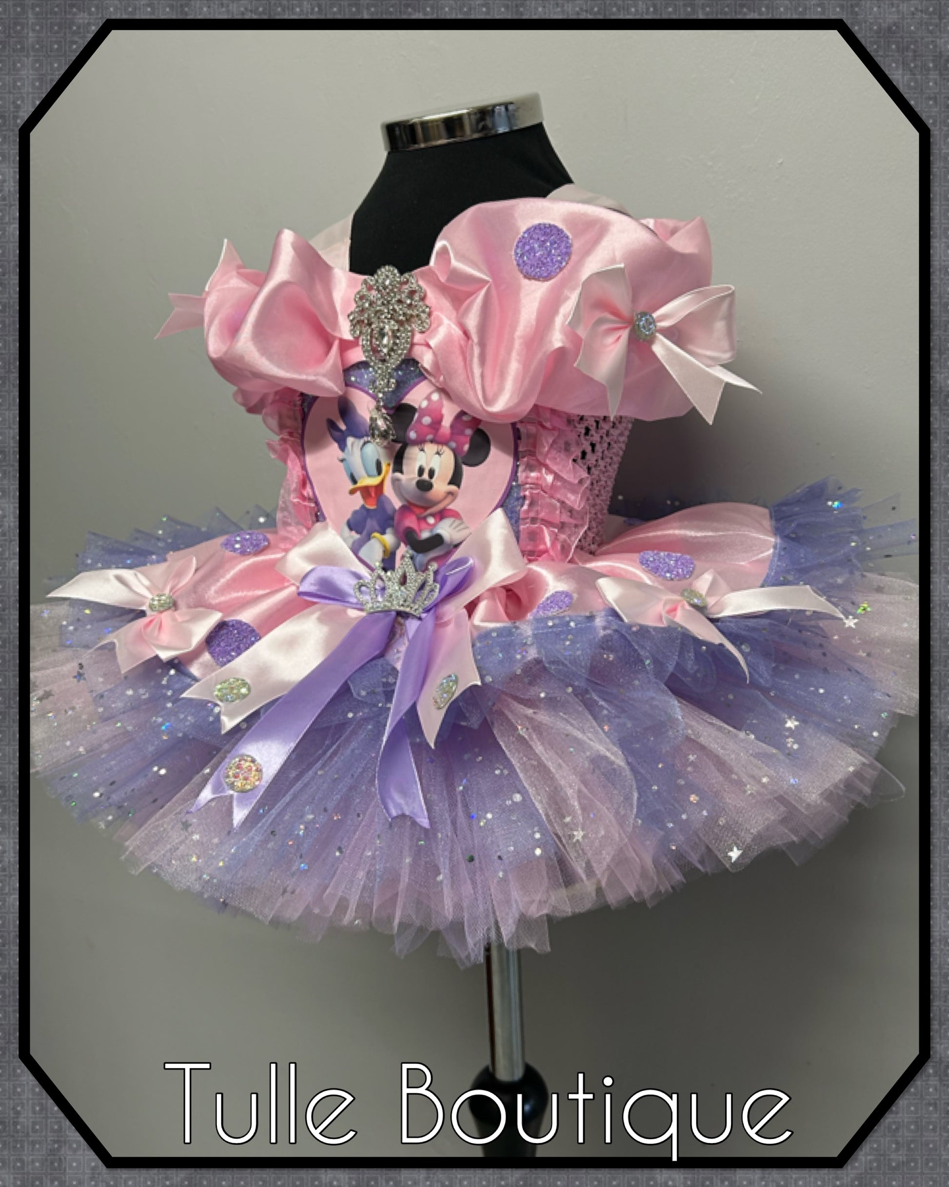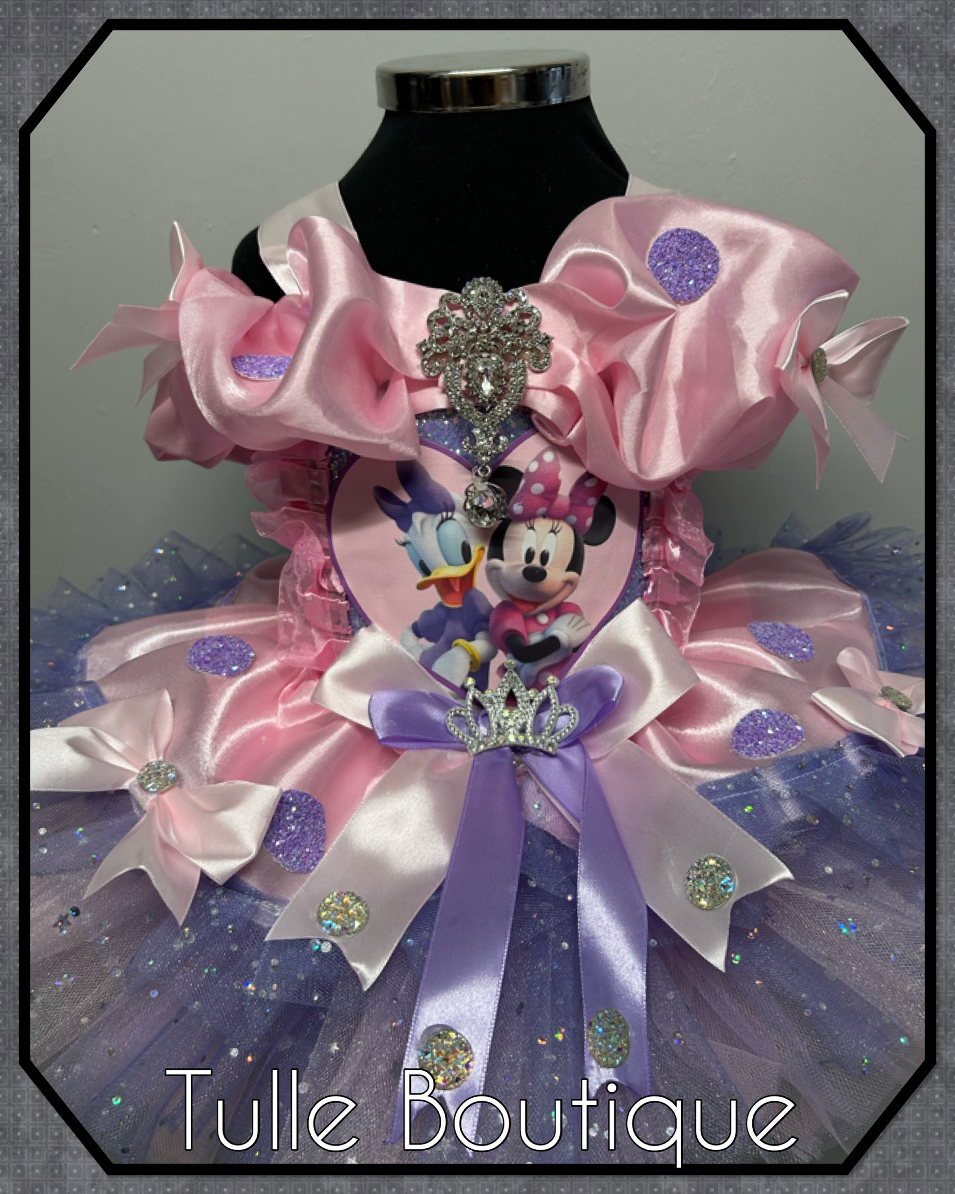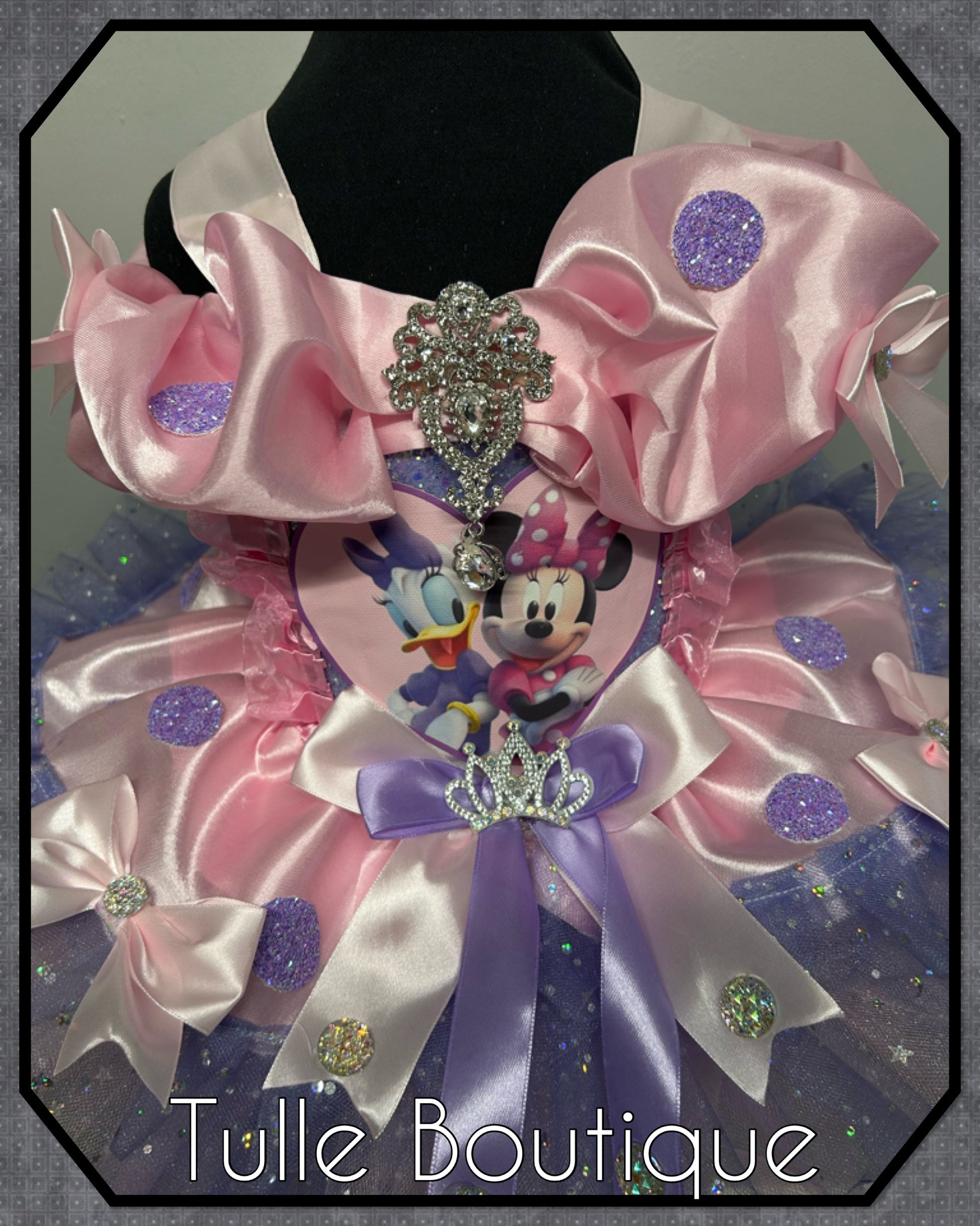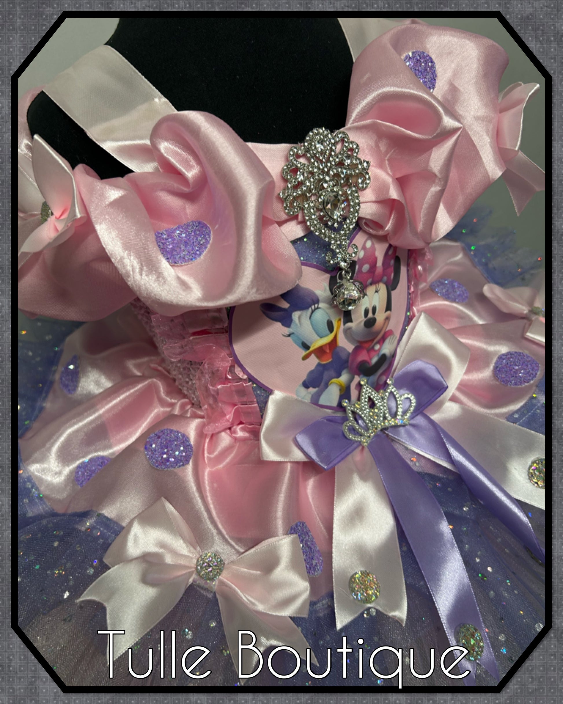 Girls Minnie mouse and Daisy Duck glitter spot ballgown tutu dress fancy dress costume