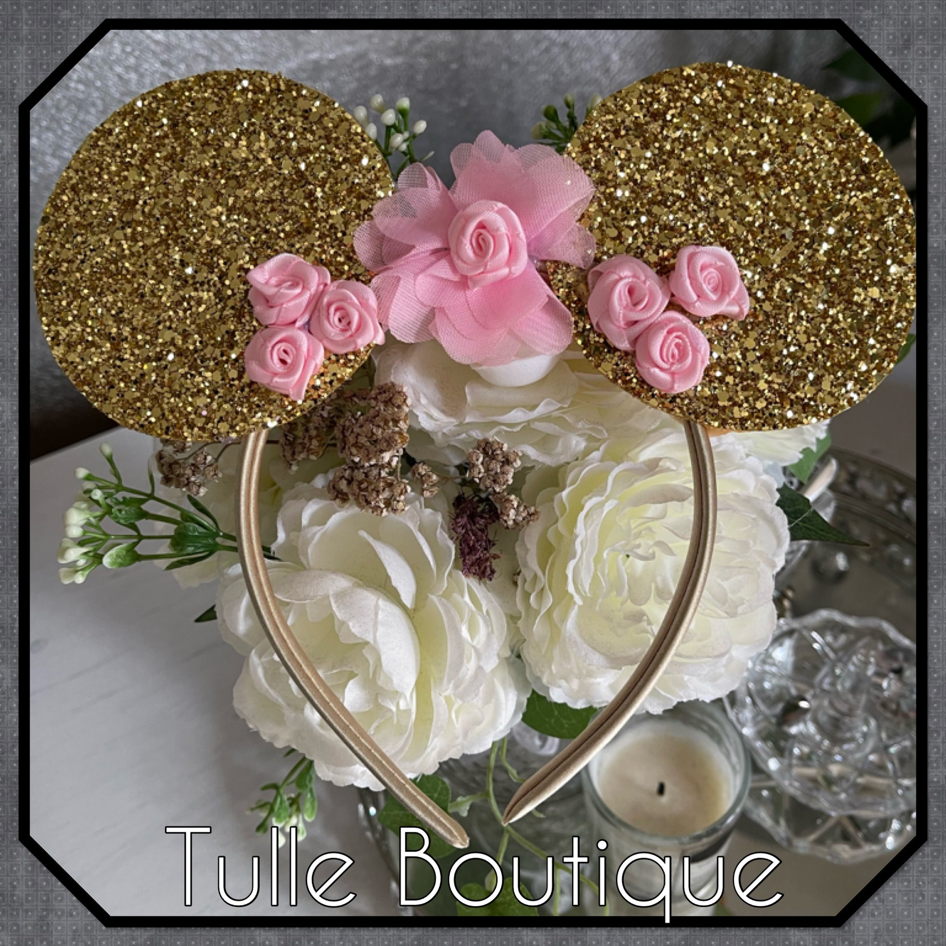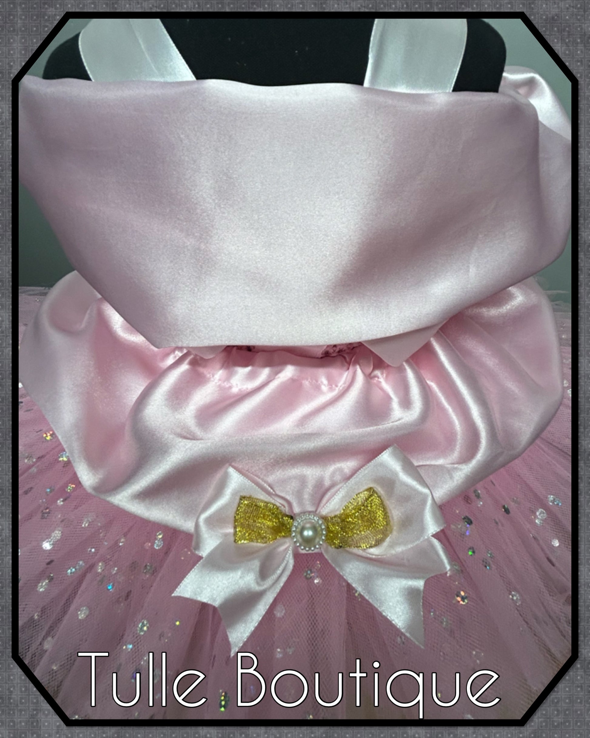 Girls Minnie Mouse gold glitter baby pink polka dot ballgown tutu dress