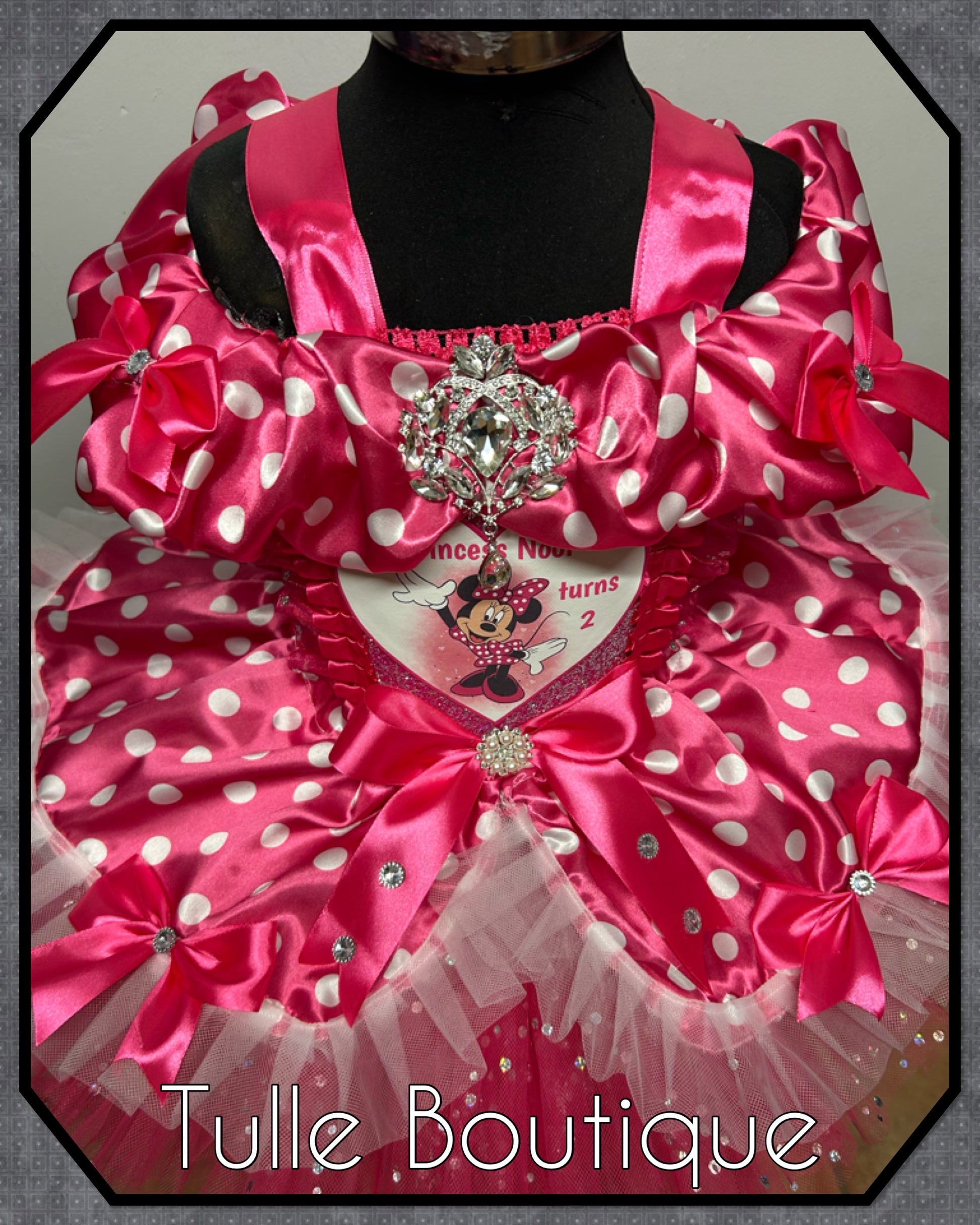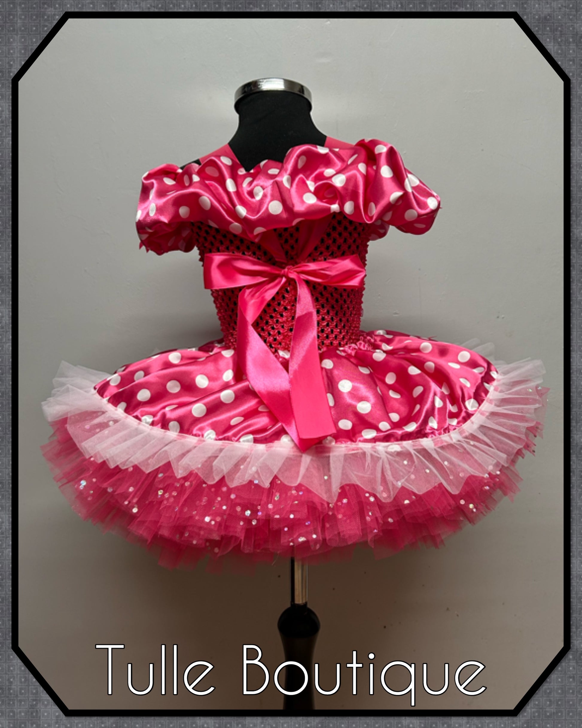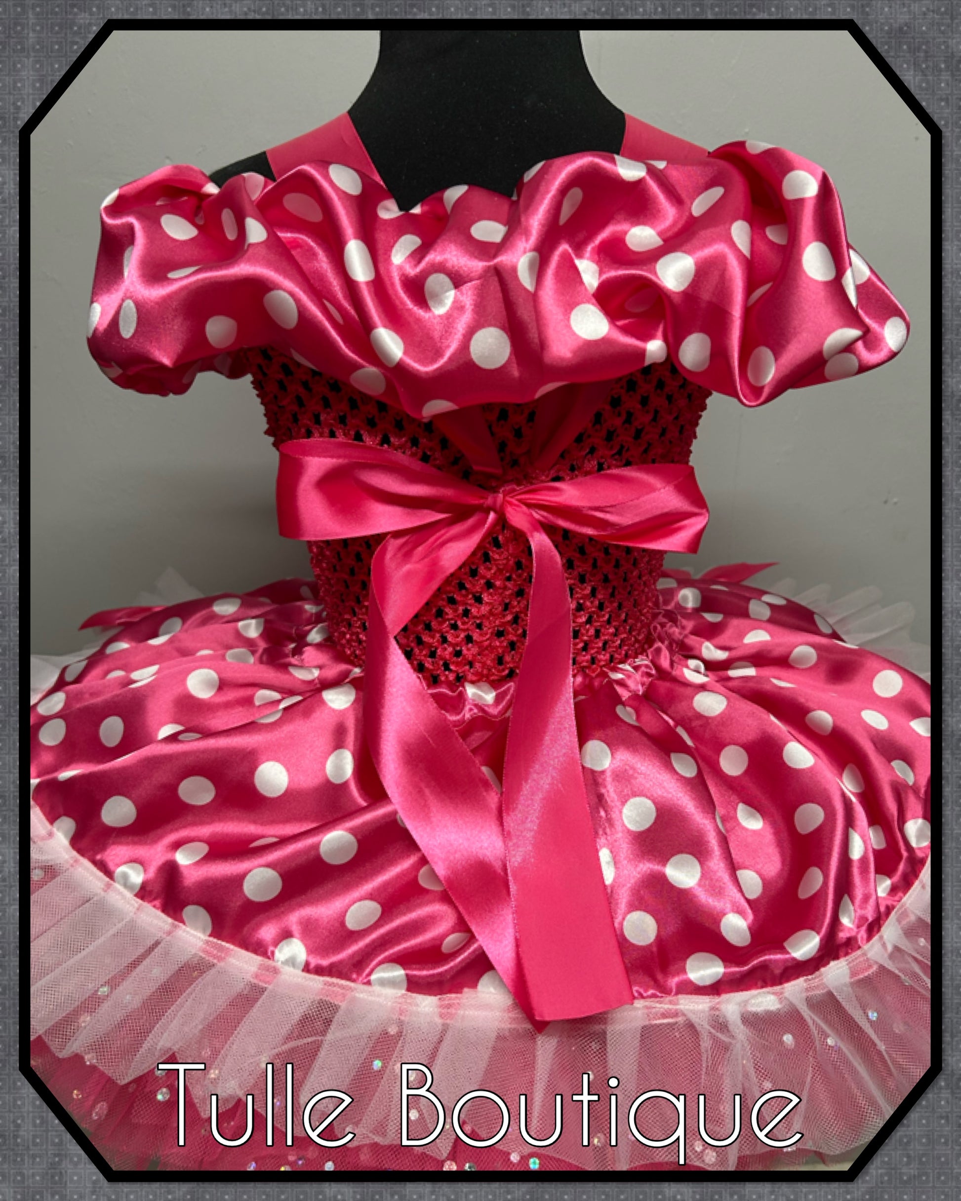 Girls Minnie Mouse hot pink and white polka dot ballgown tutu dress