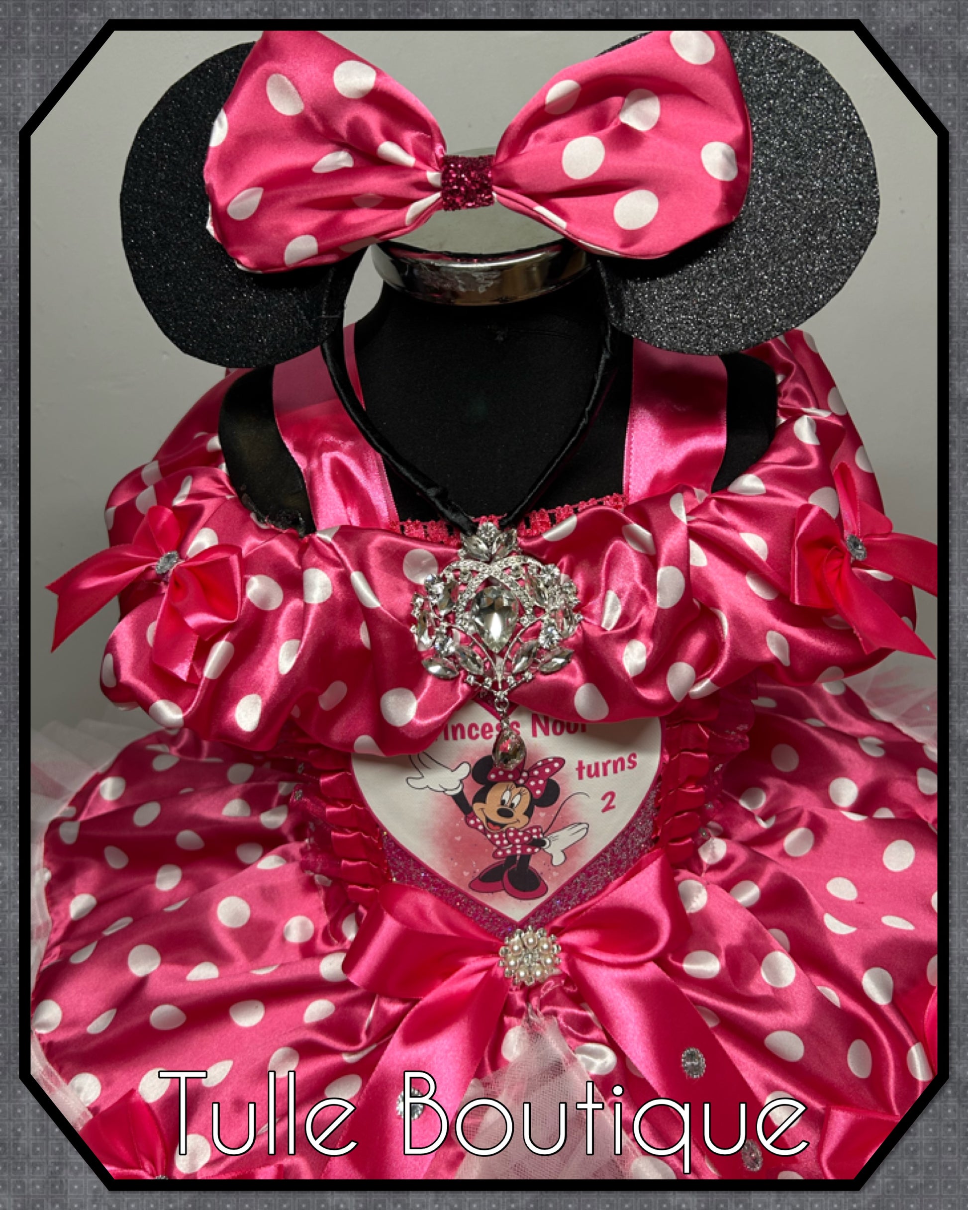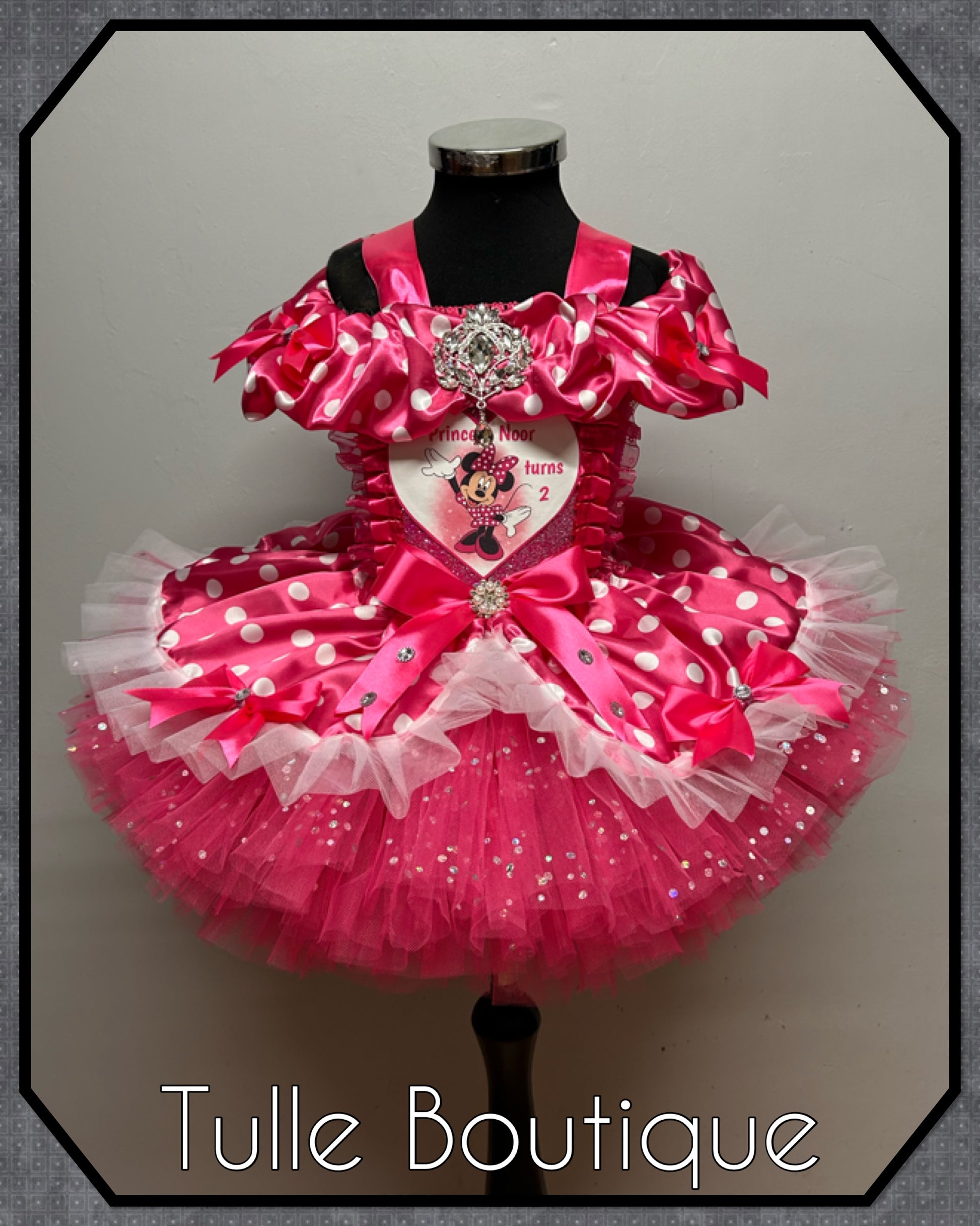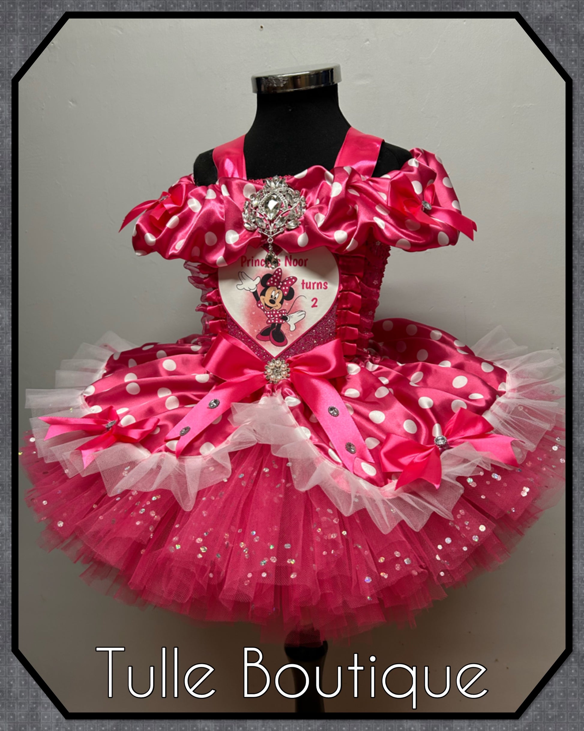 Girls Minnie Mouse hot pink and white polka dot ballgown tutu dress