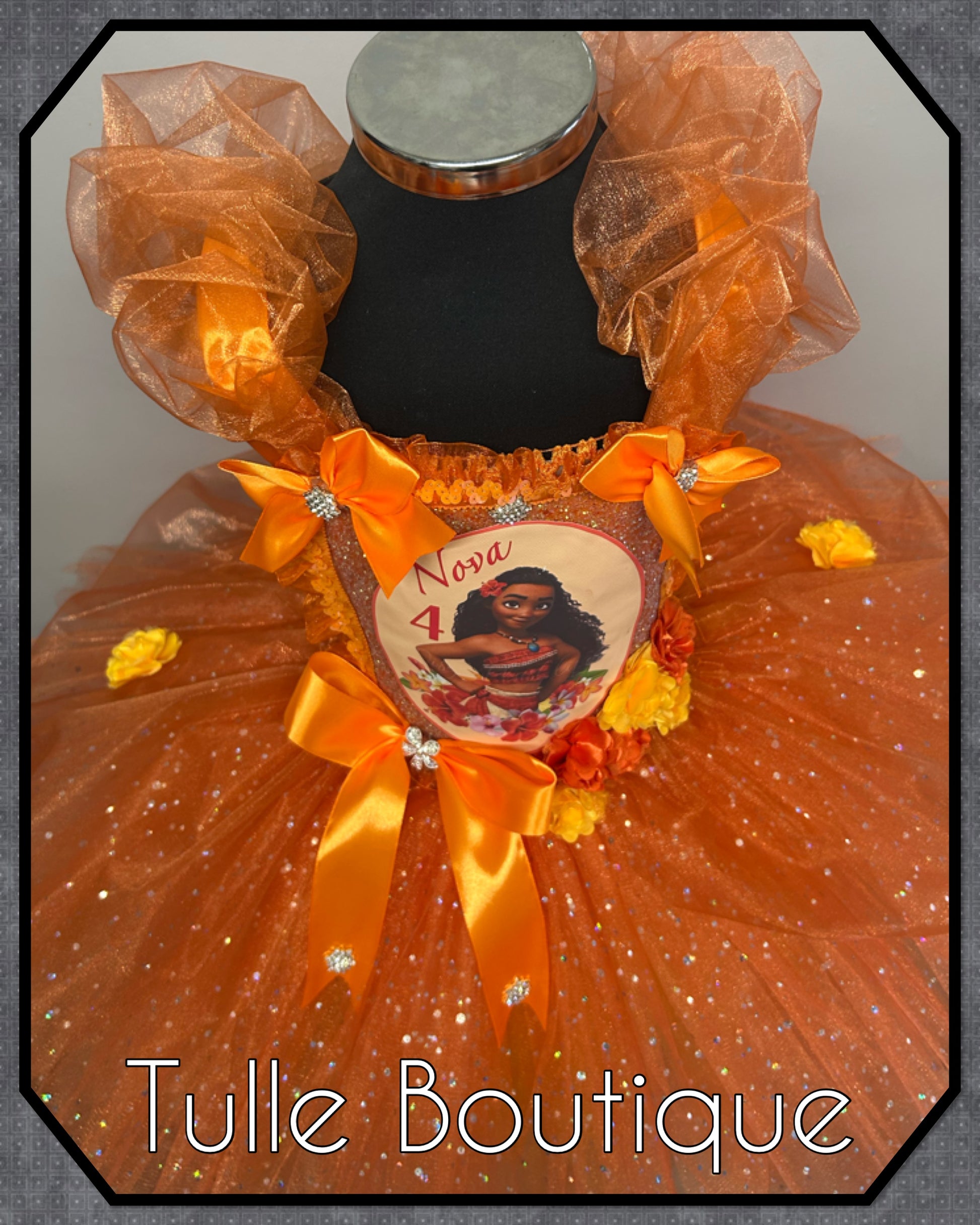 Girls Toddlers Moana Princess organza orange ballgown tutu dress