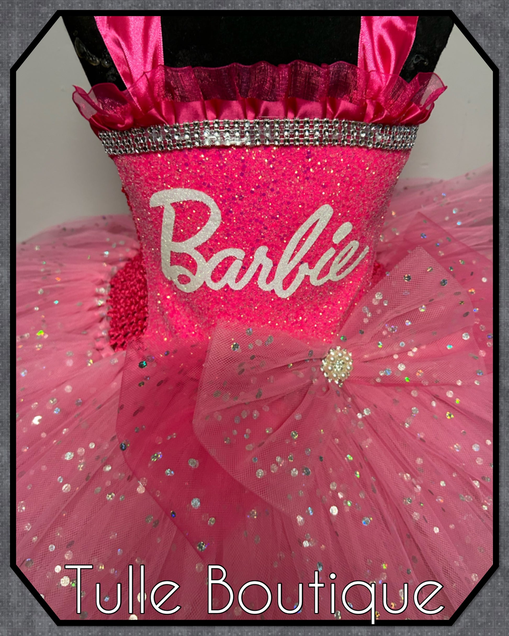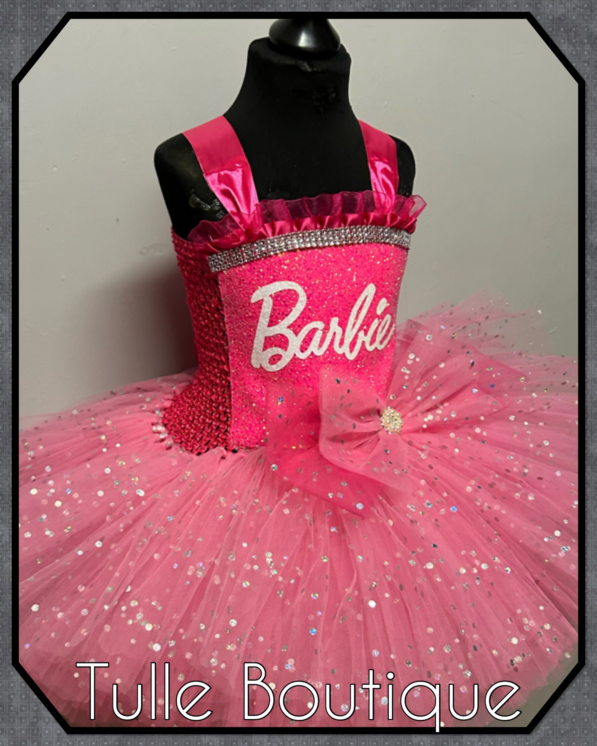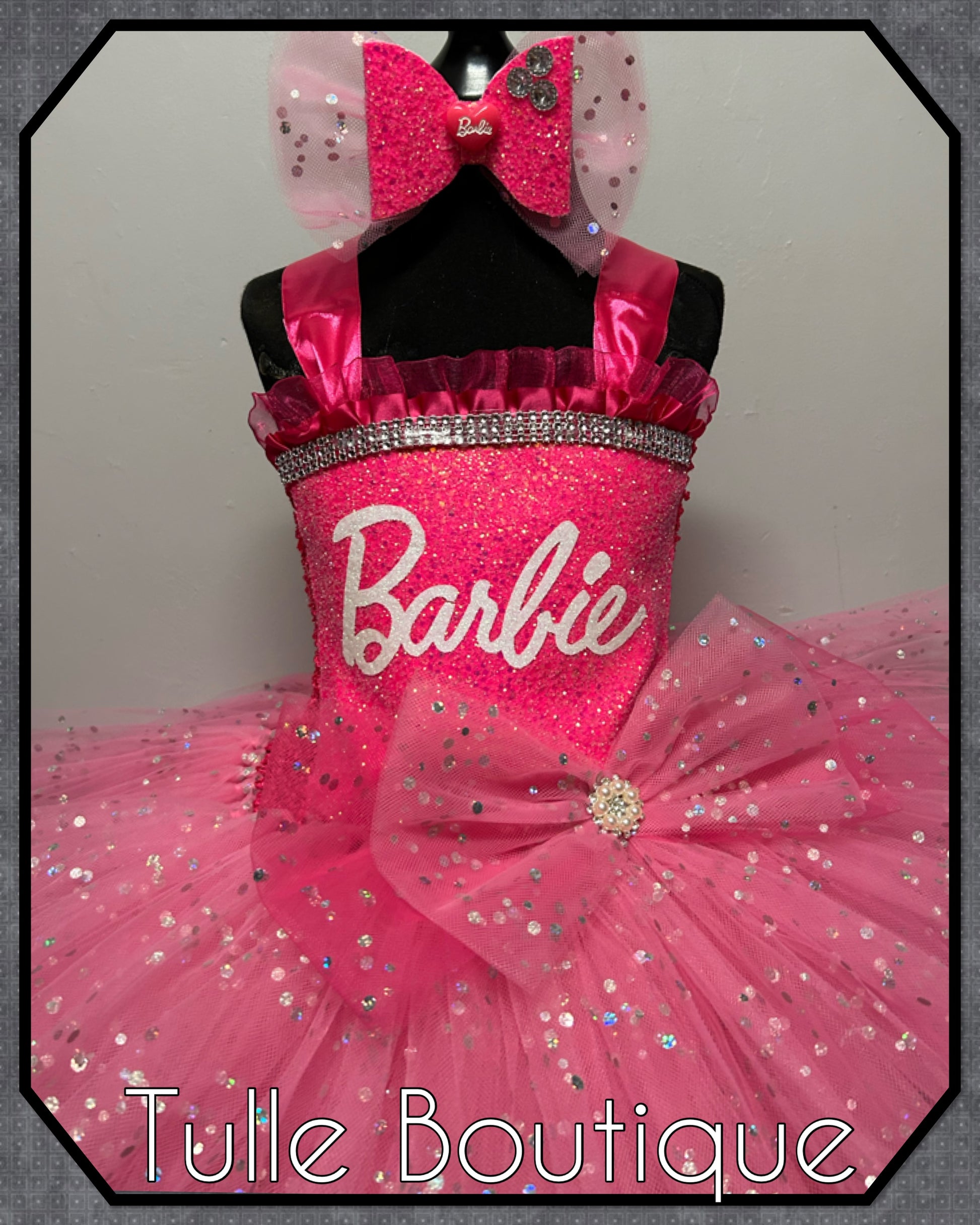 Girls Glitter pink doll Barbie themed girls birthday party tutu dress