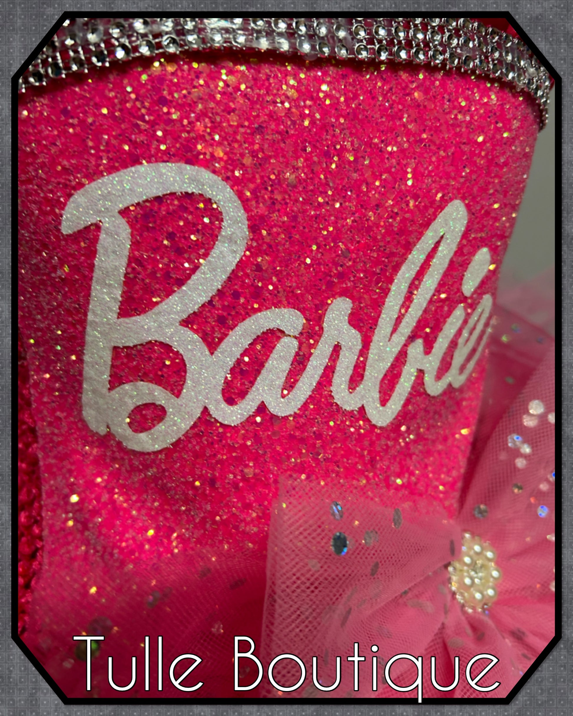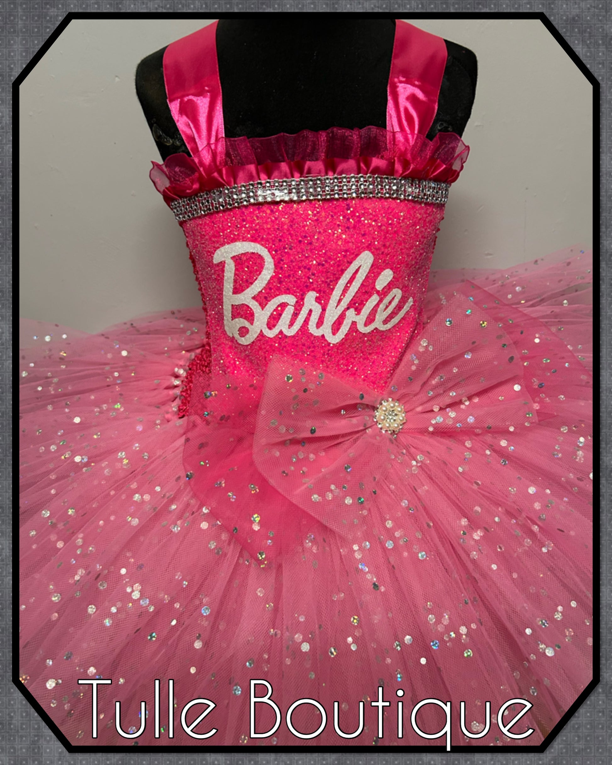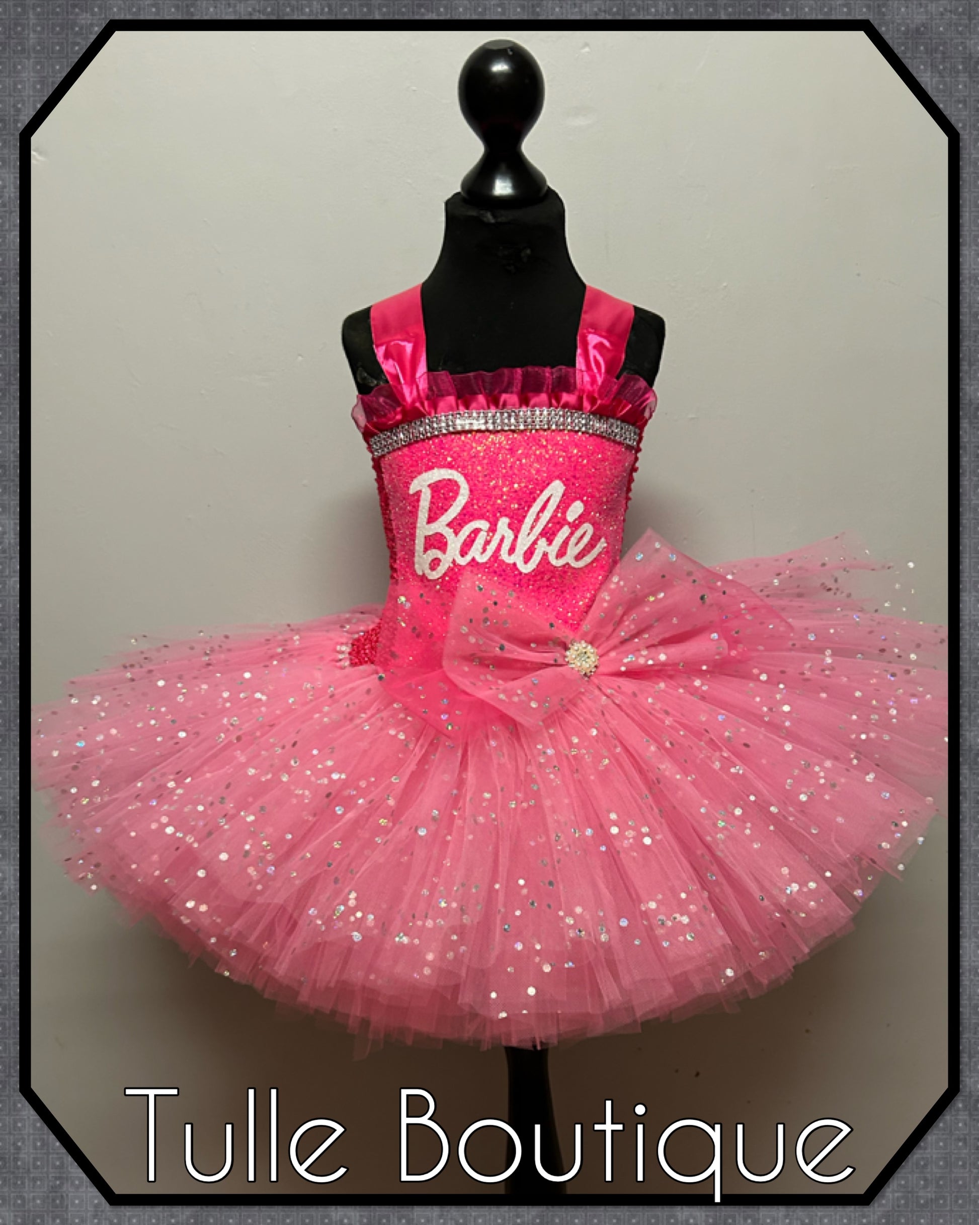 Girls Glitter pink doll Barbie themed girls birthday party tutu dress