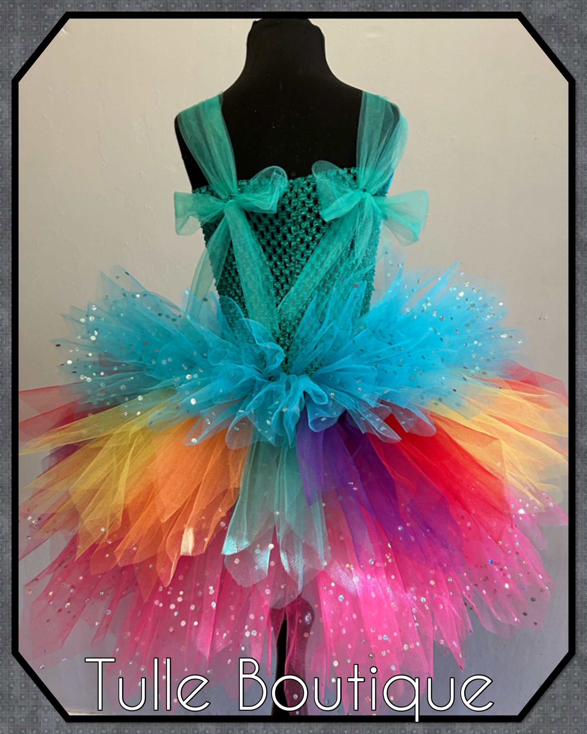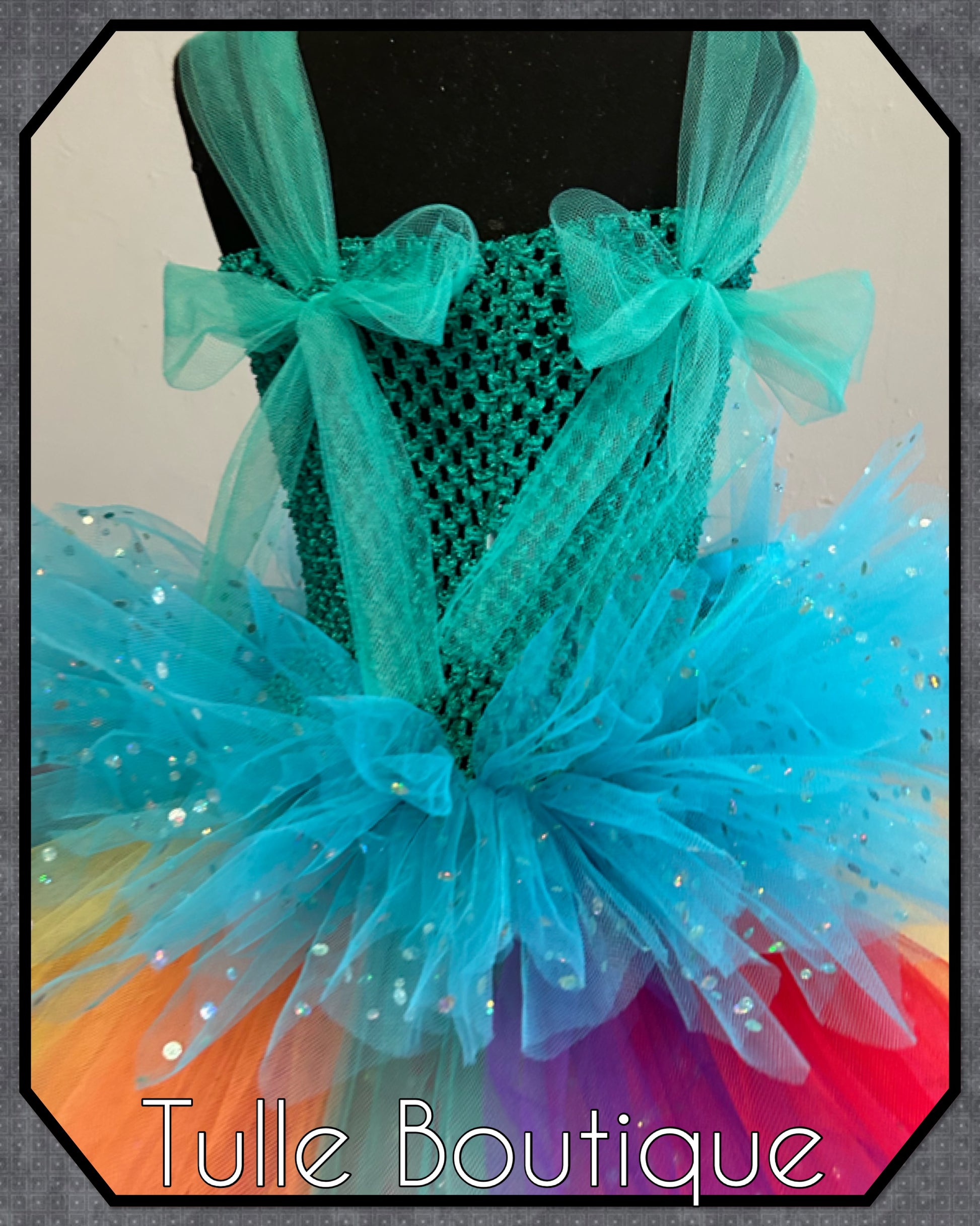 Each tutu is hand tied onto the crochet top with three double layers for extra volume and fullness so it is not see through with sparkle pieces added for that extra wow factor.