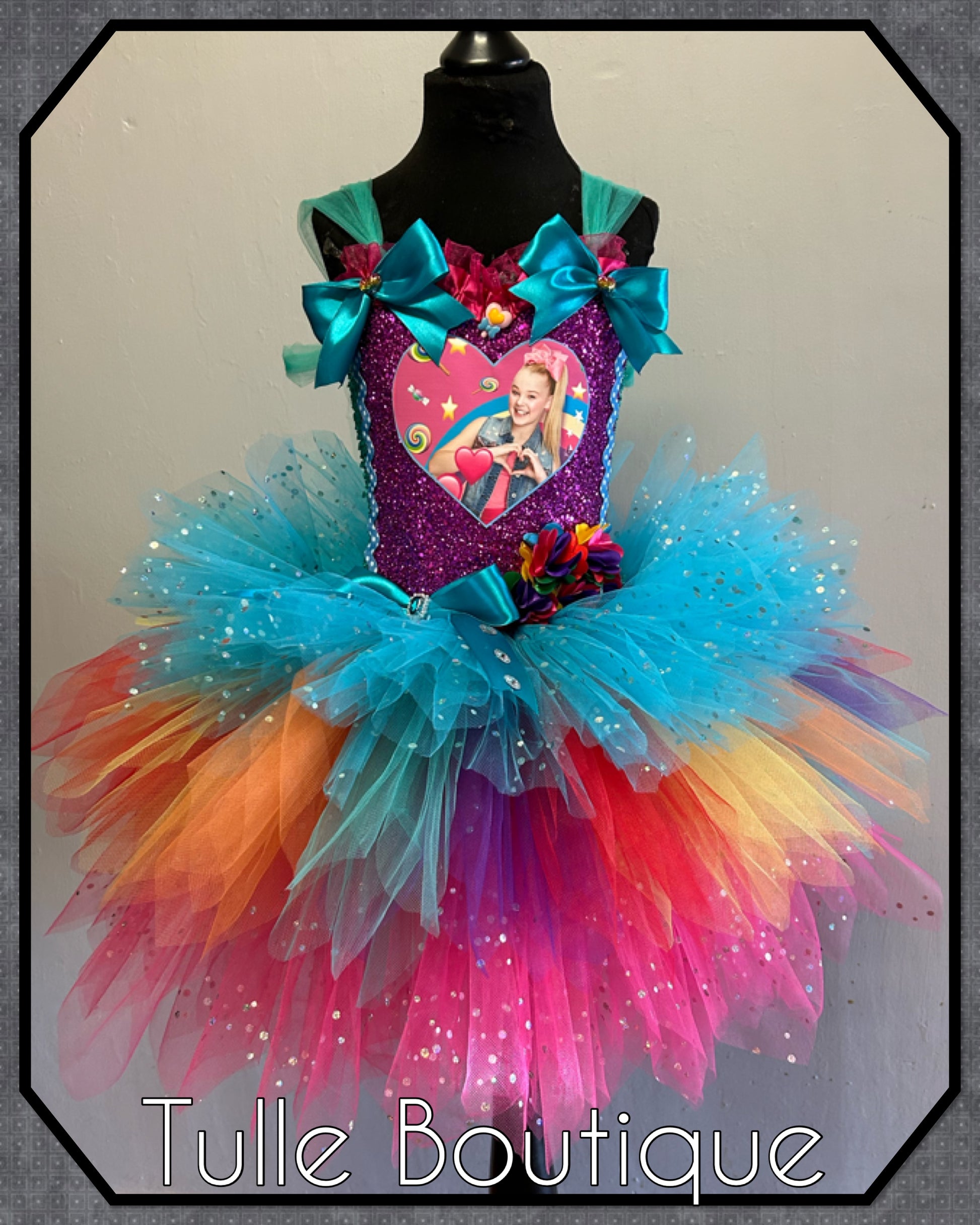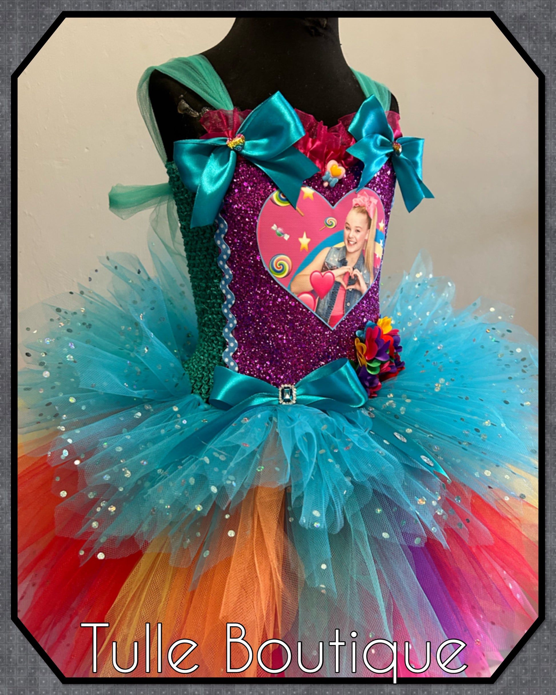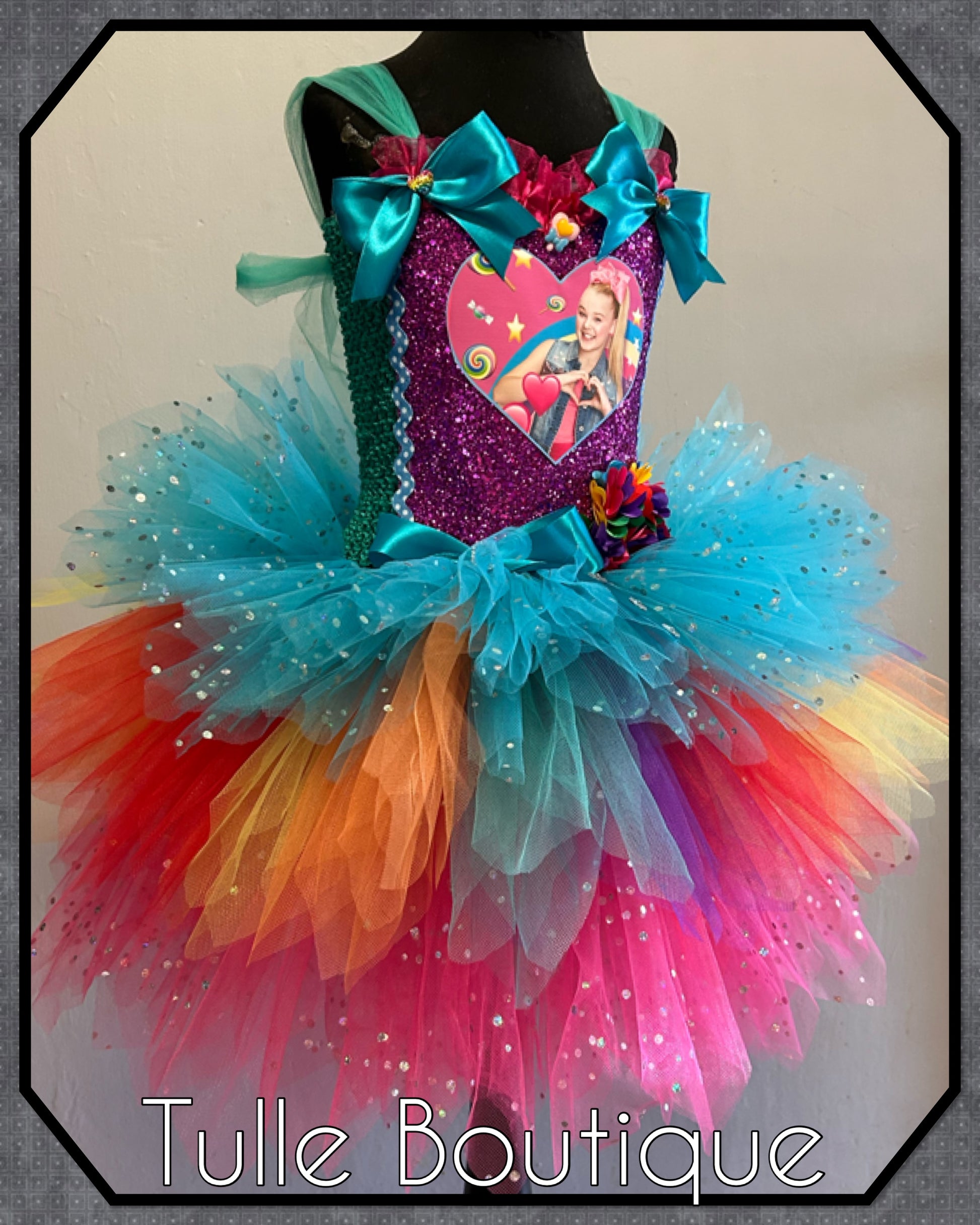 Jojo Siwa bow rainbow birthday party tutu dress