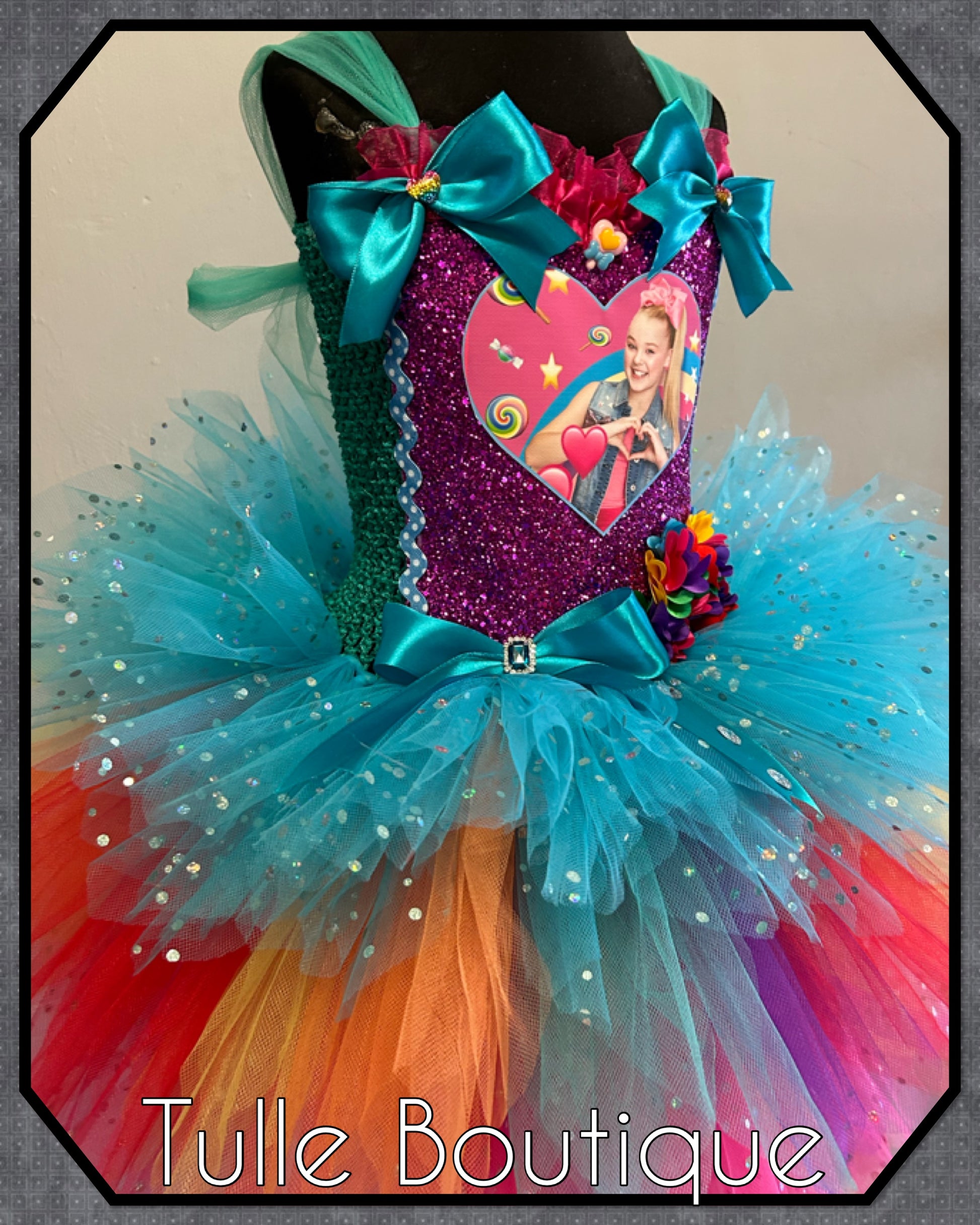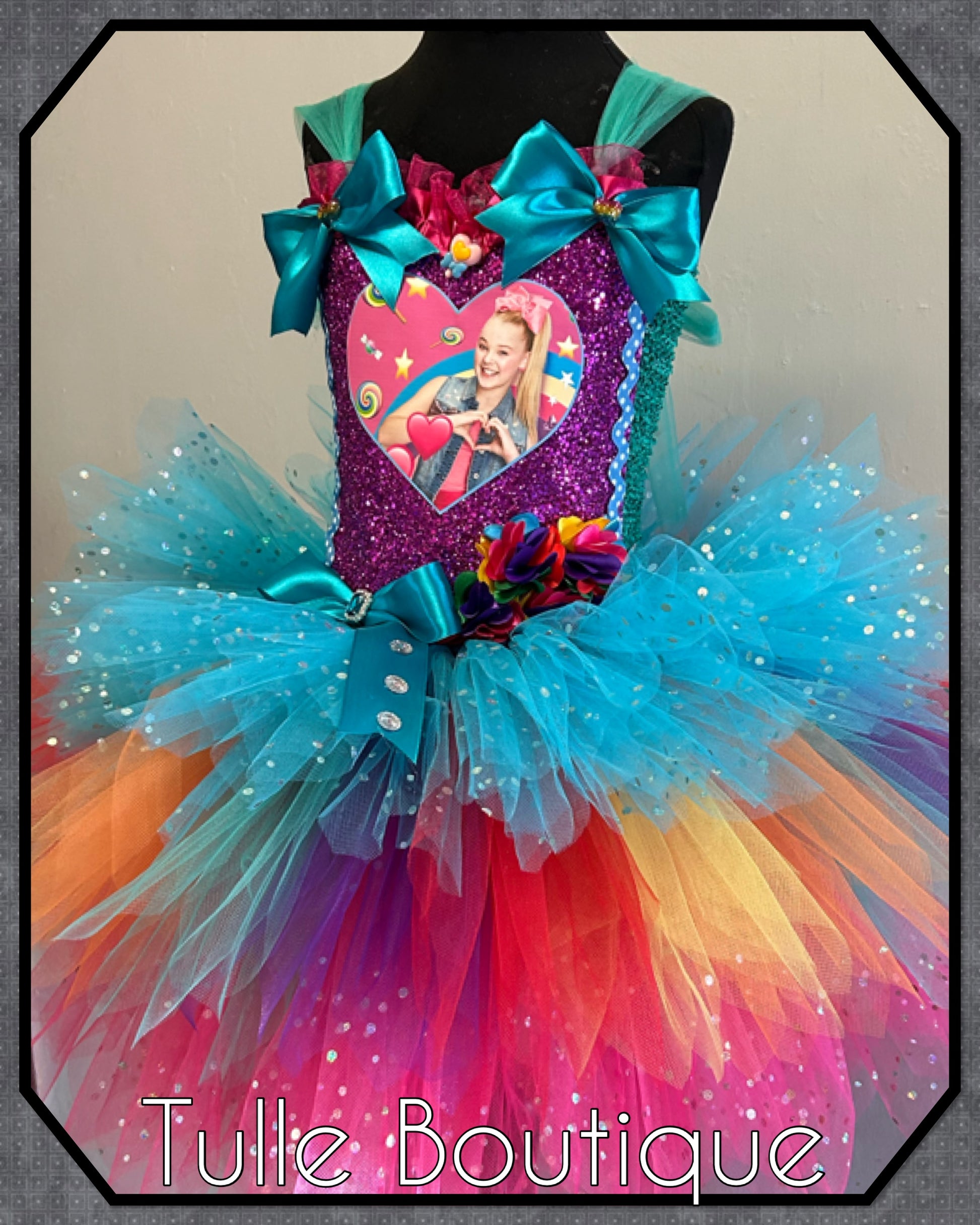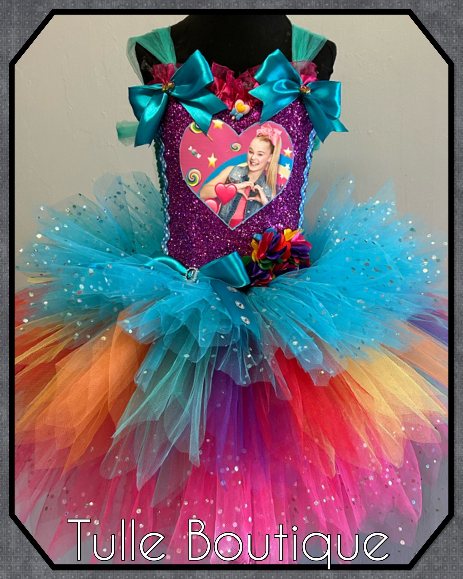 Jojo Siwa bow rainbow birthday party tutu dress
