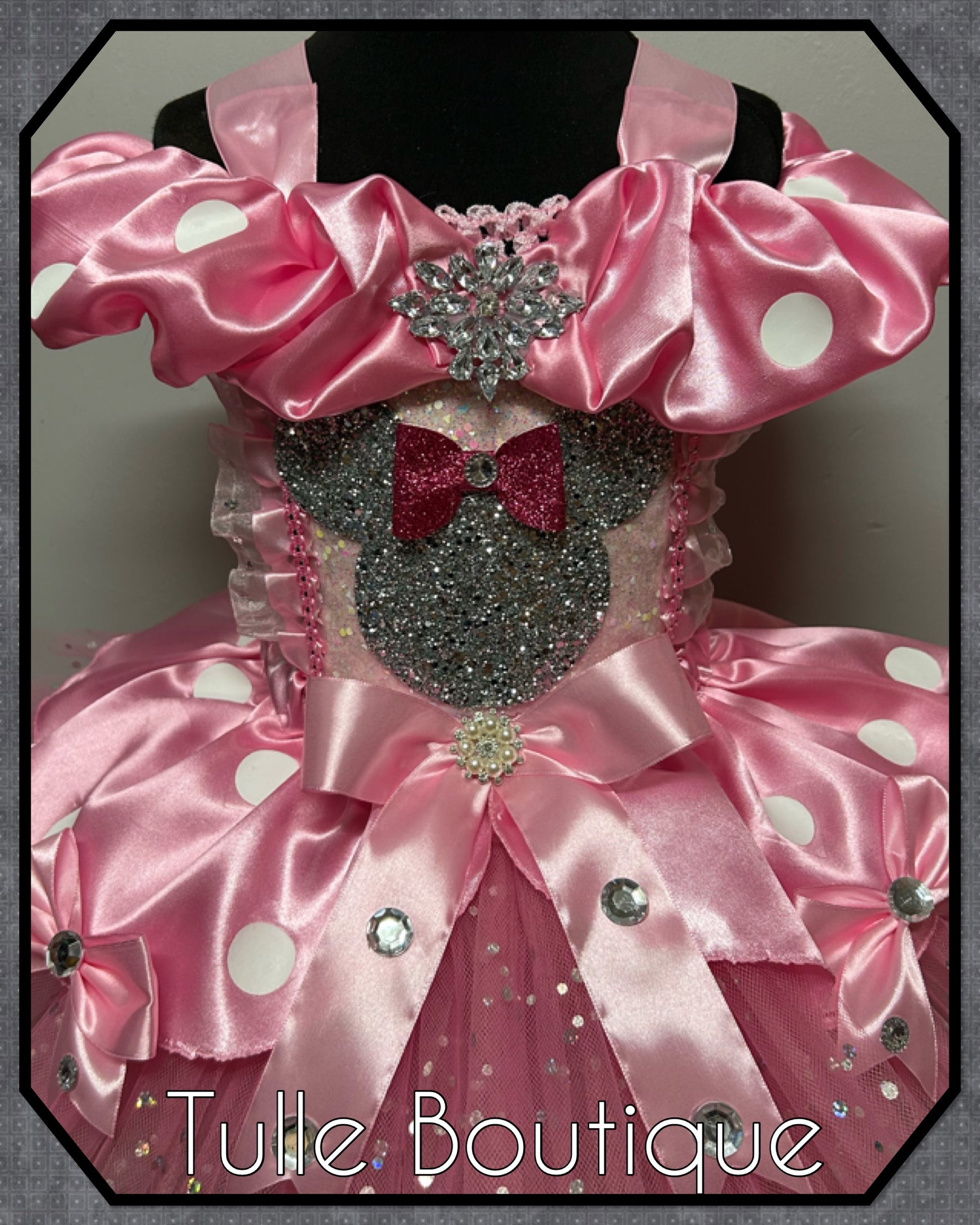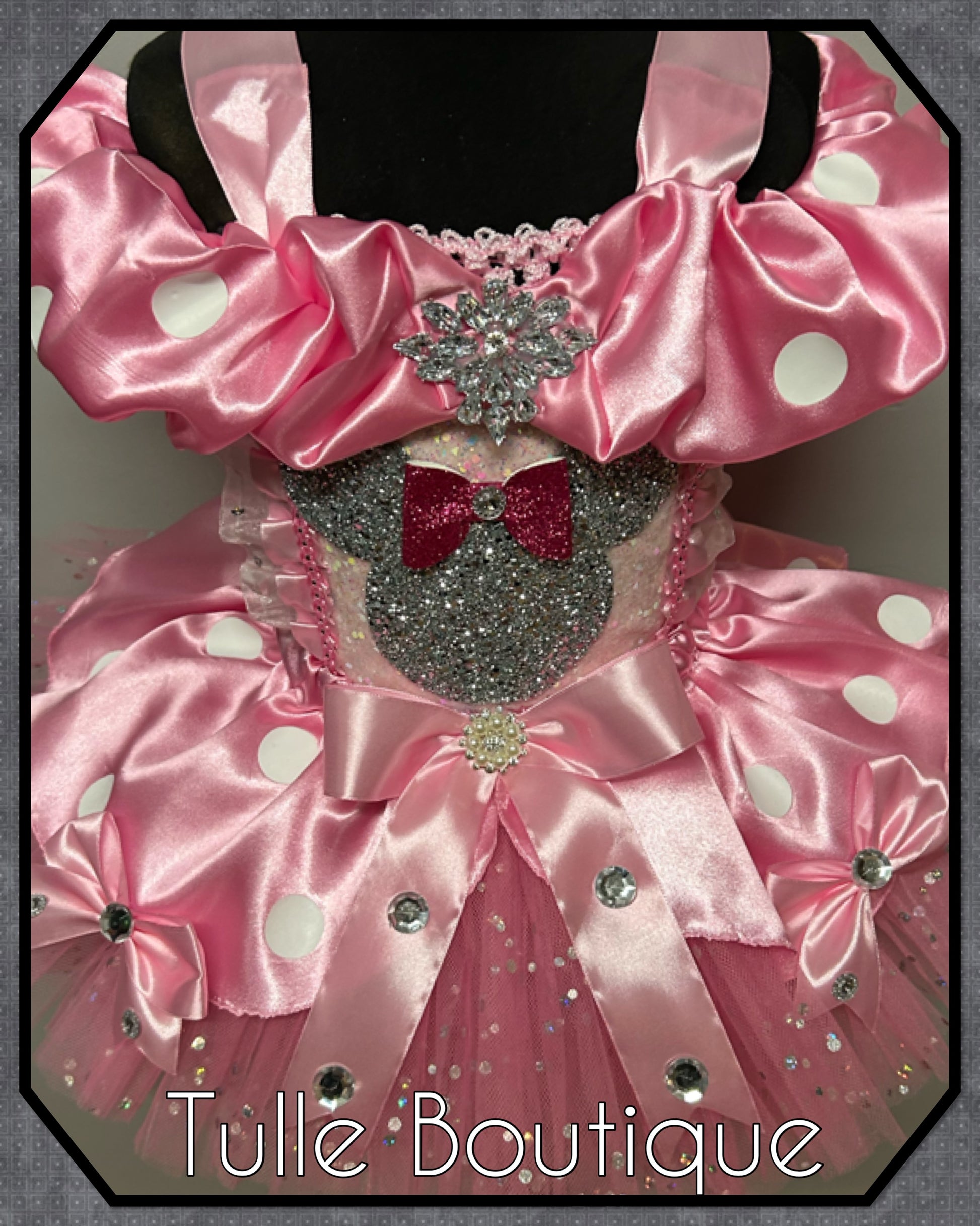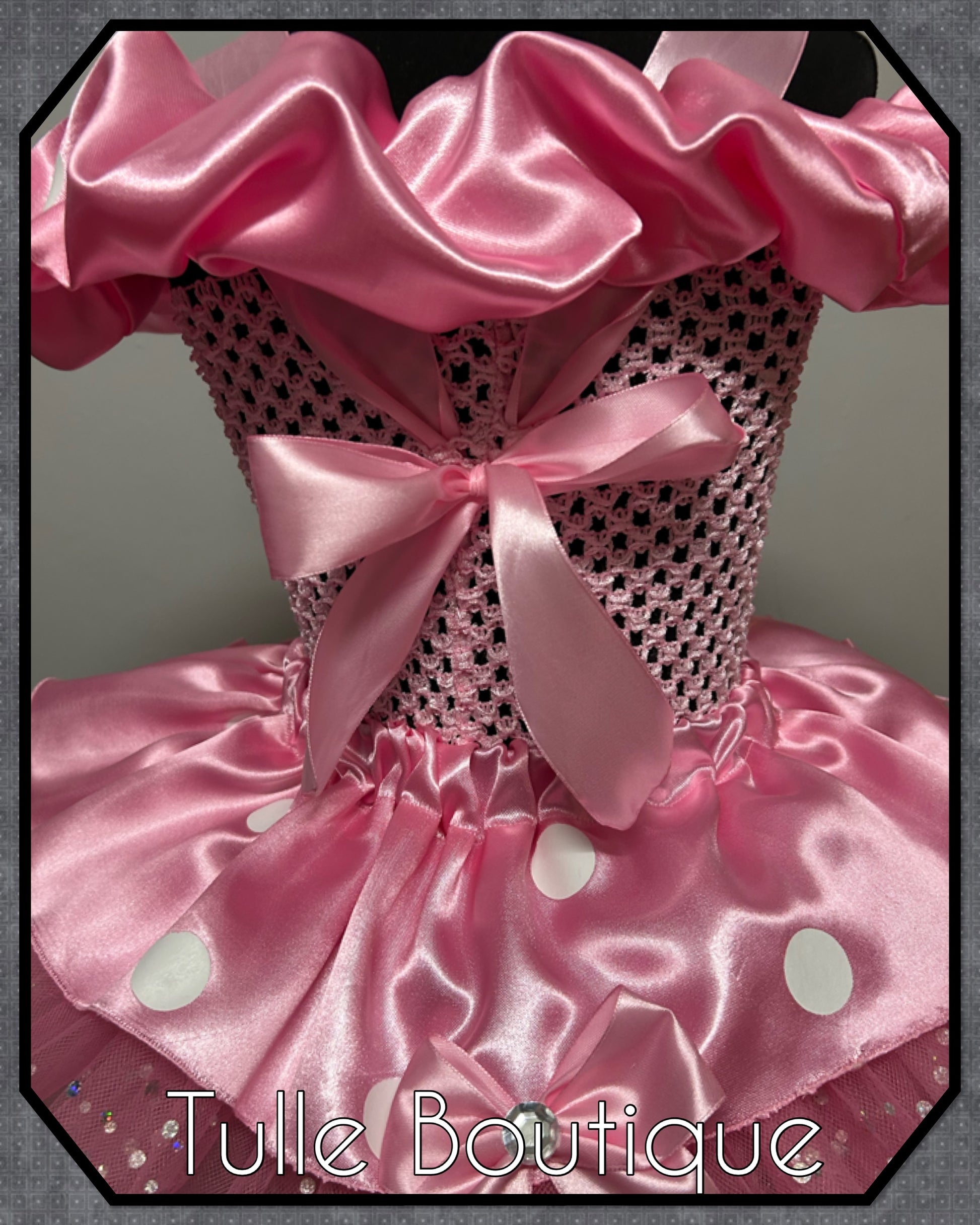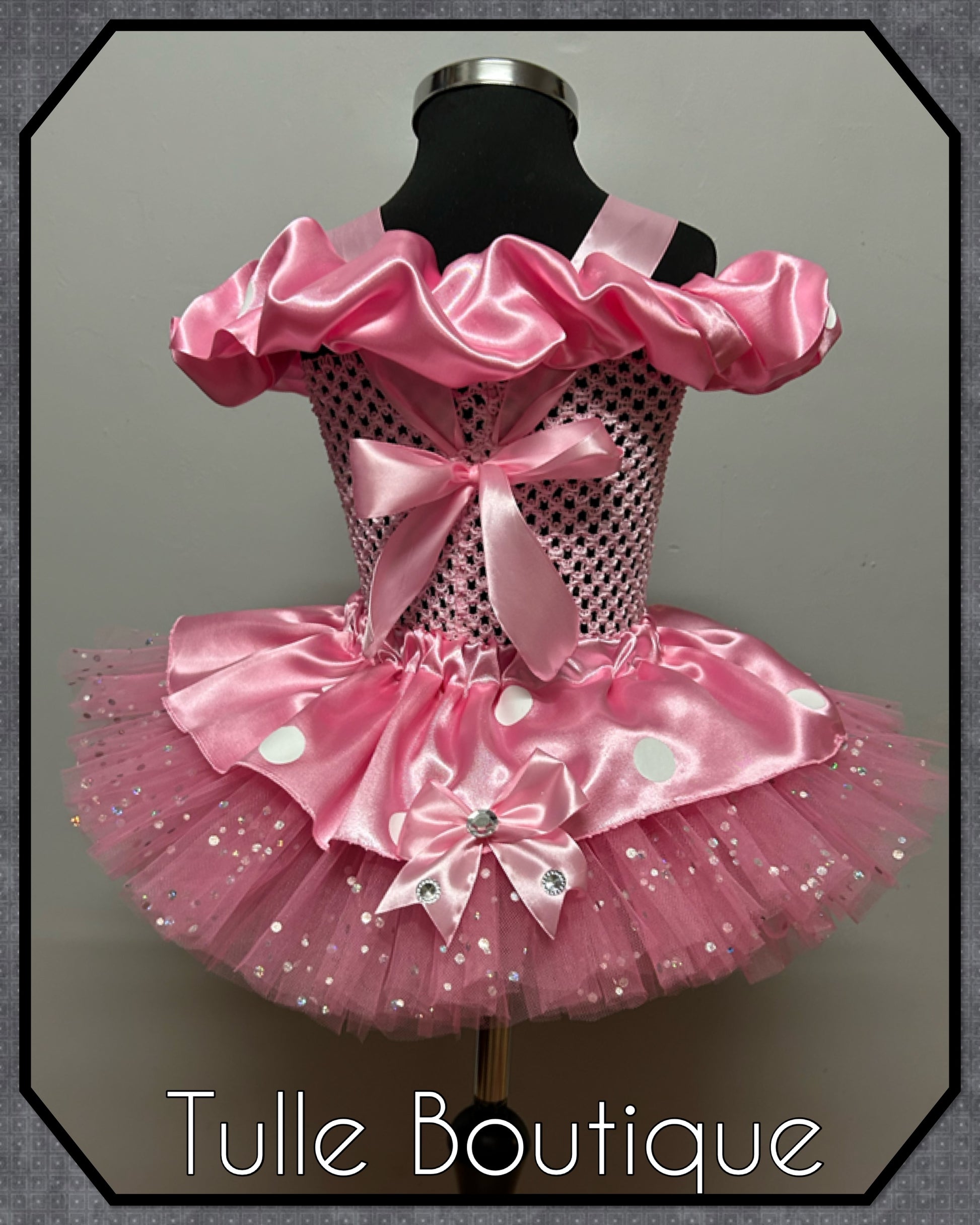 Girls Minnie Mouse candy pink polka dot tutu dress costume sparkly ballgown