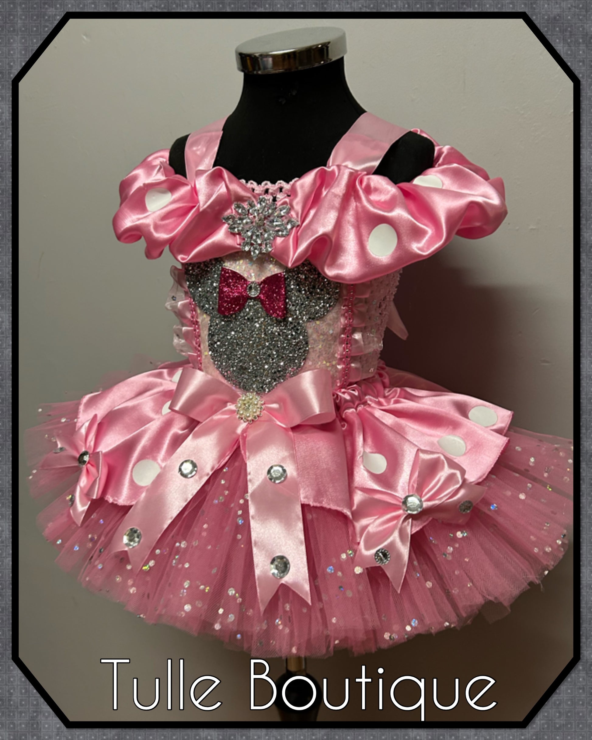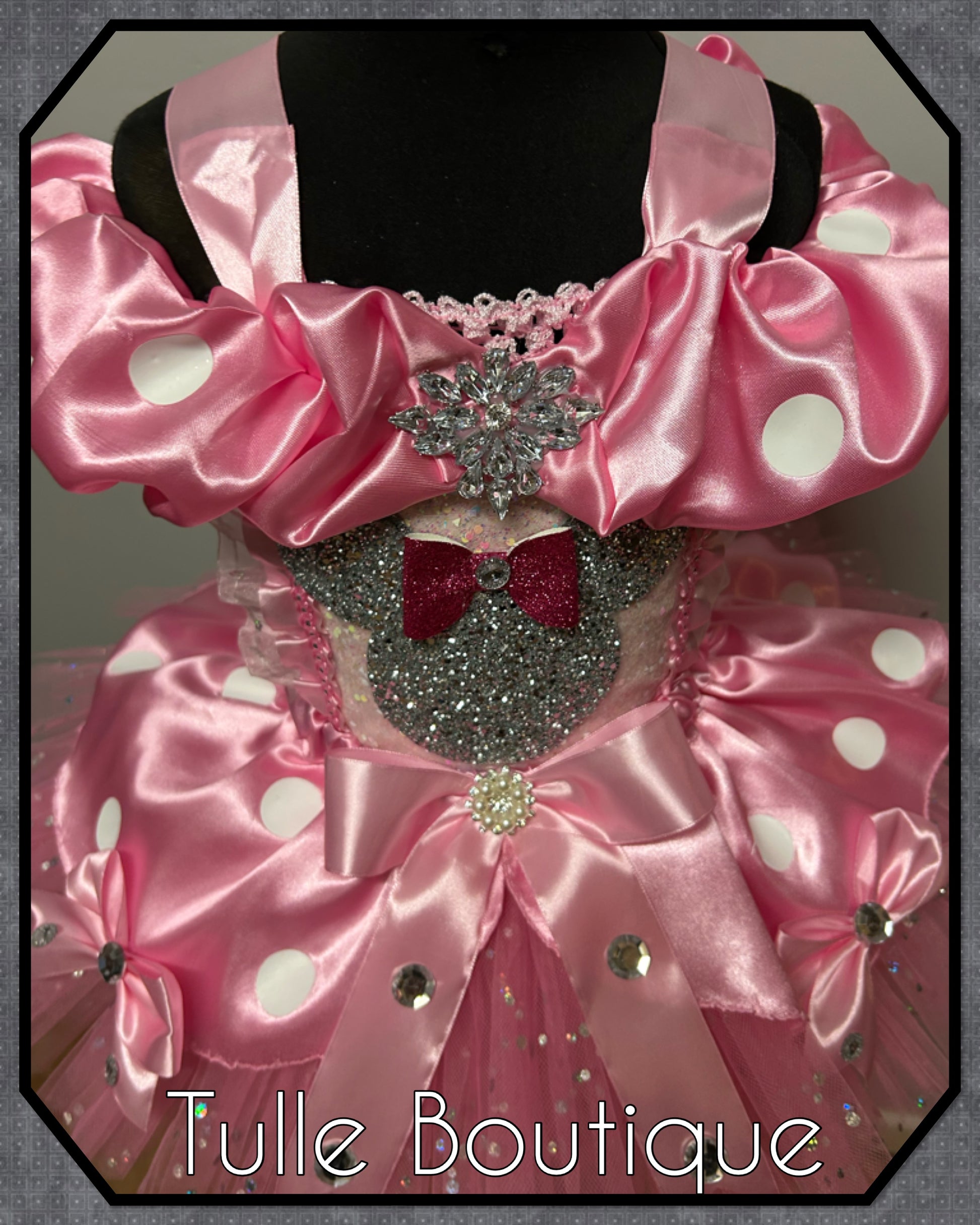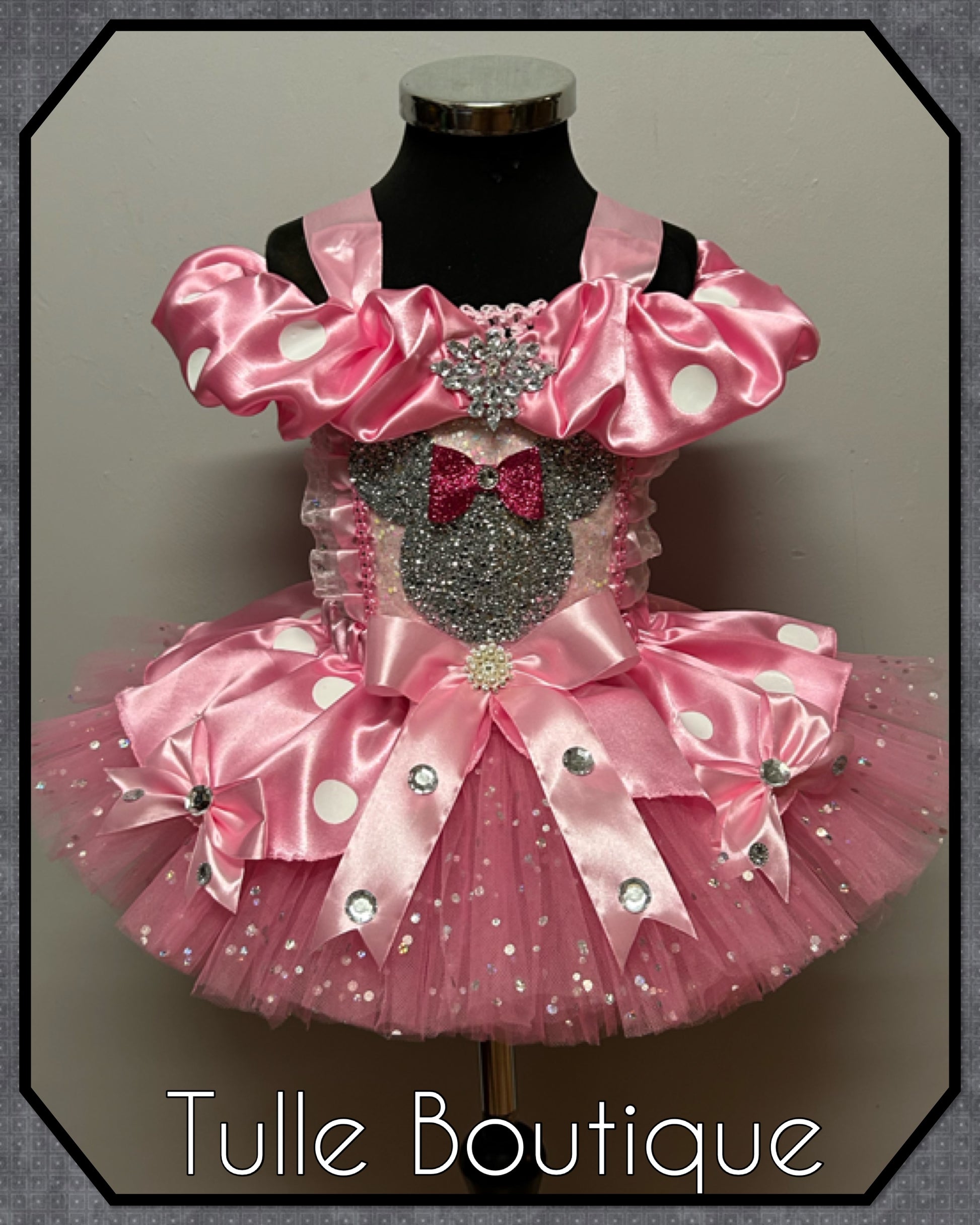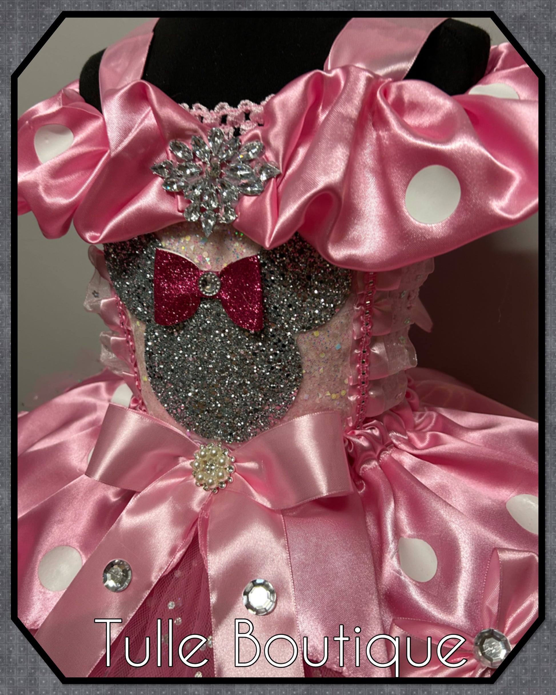 Girls Minnie Mouse candy pink polka dot tutu dress costume sparkly ballgown
