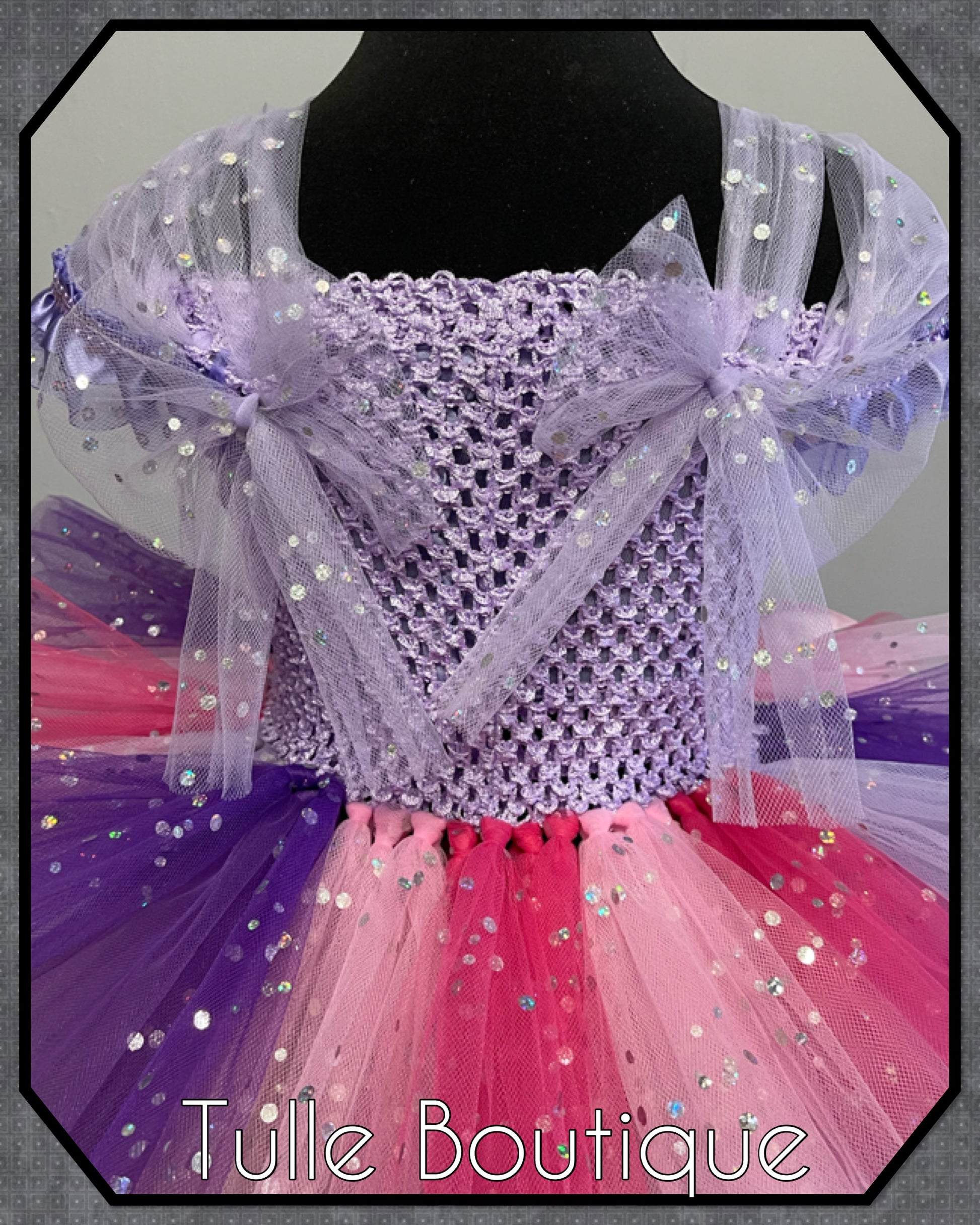 The body of the dress is made using a stretchy crochet top which is fully lined for coverage so it is comfortable to wear with great movement so perfect for little ones that love to perform.