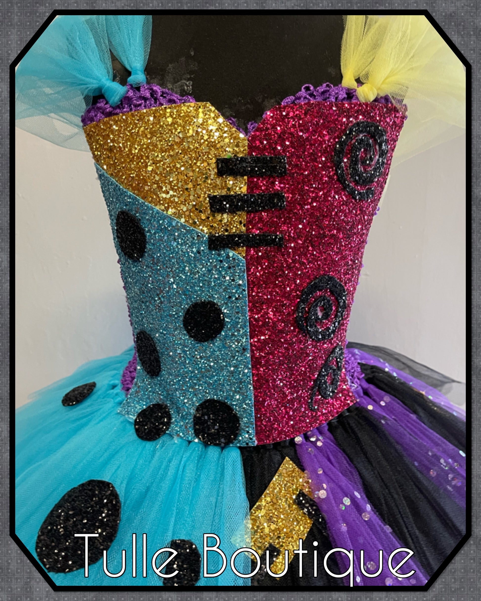 Each tutu is hand tied onto the crochet top with two double layers for extra volume and fullness so it is not see through with glitter detailing to the top layer.