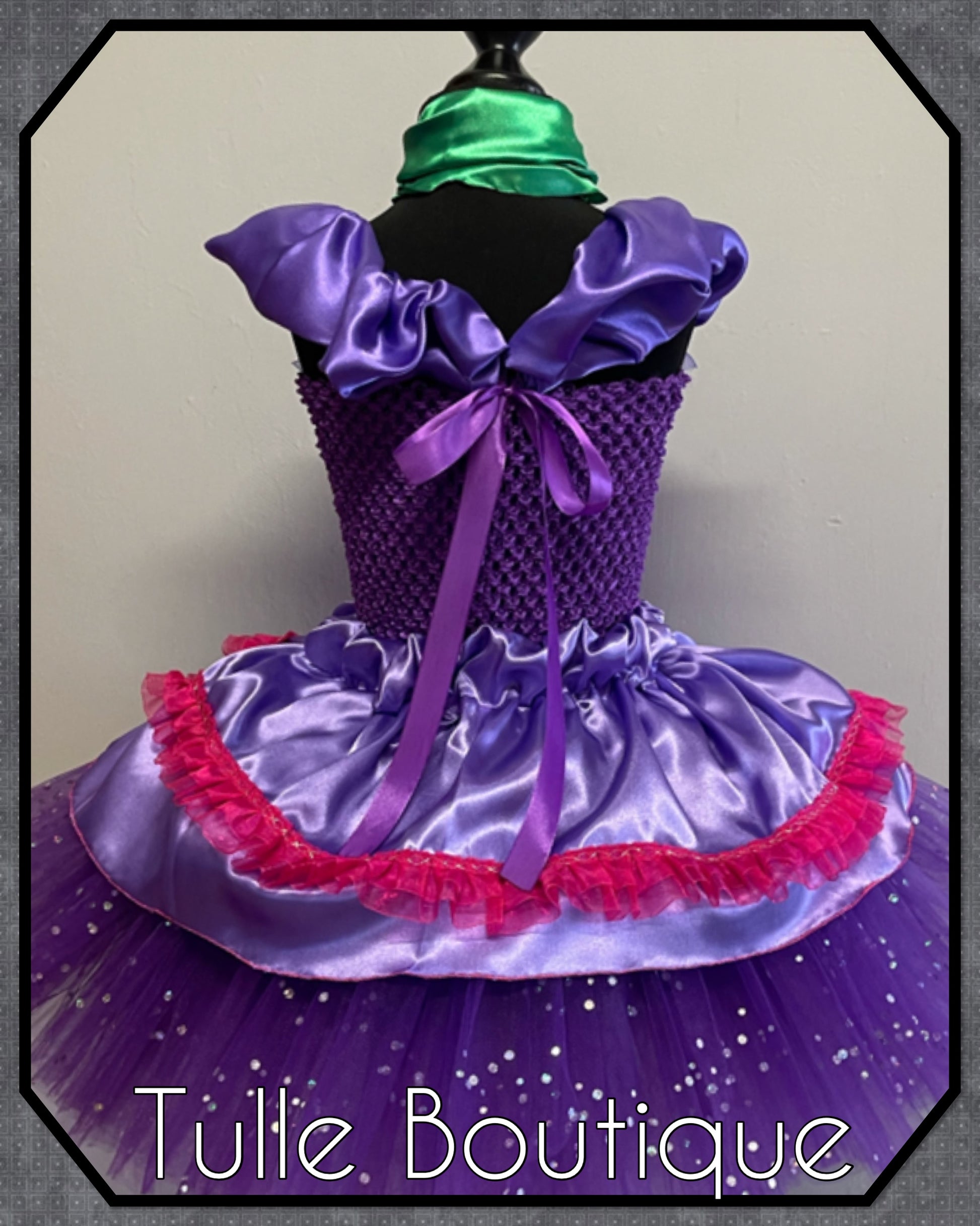 Each tutu is hand tied onto the crochet top with two double layers for extra volume and fullness so it is not see through finishes with a satin overlayer with hotpink ruffle.