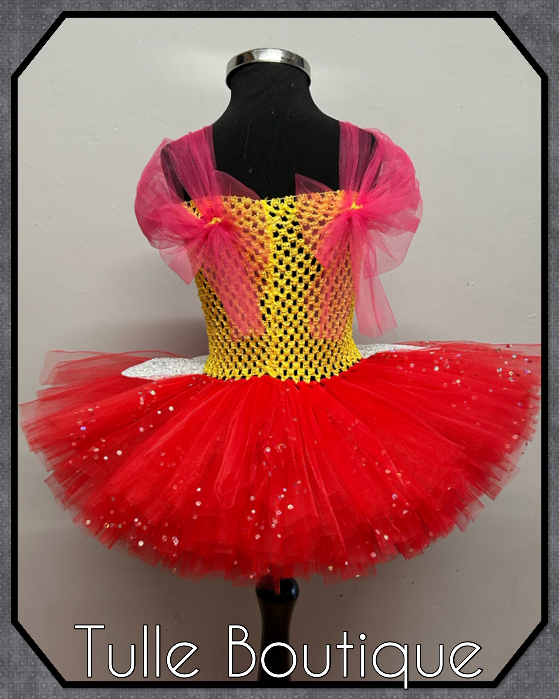 The body of the dress is made using a stretchy crochet top so it is comfortable to wear with great movement so perfect for little ones that love to perform.